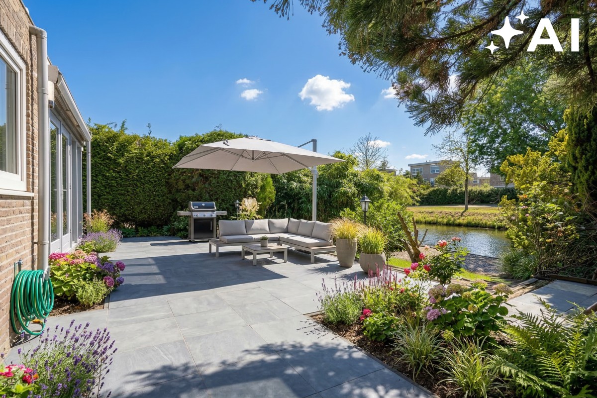 The garden borders directly on the water, where you can moor your own boat. Through Almere’s charming boating routes, the water connects directly to the Noorderplassen and the Gooimeer, making it ideal for boating and recreational enthusiasts.