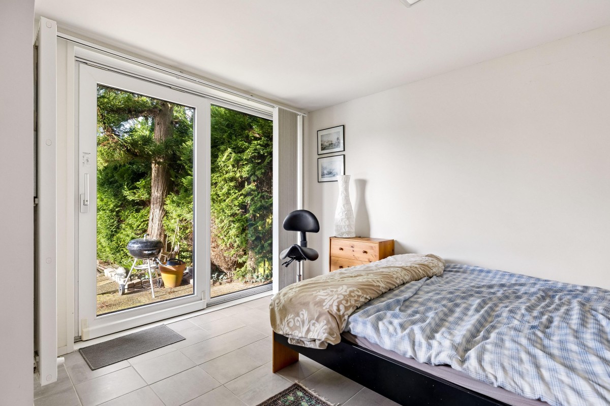 The large bedroom spans the entire width of the house and can easily be divided into two separate bedrooms again.