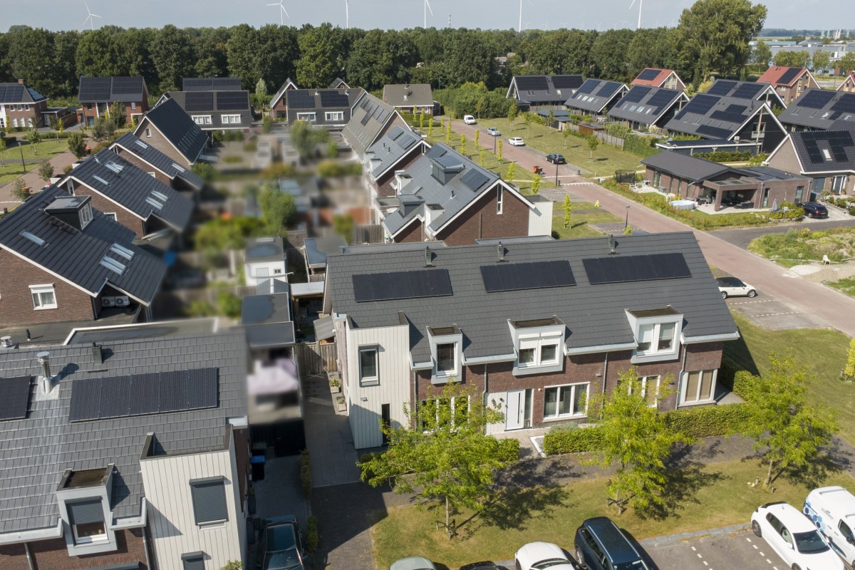 This surprisingly spacious corner house (part of a semi-detached house) is situated in a beautiful location in the new housing development "De Graafschap" in Biddinghuizen. With a length of 11.5 meters and a width of 6.20 meters, the house has very spacious dimensions. The house was built in 2017 and is equipped with every luxury, including beautiful natural light, a luxury bathroom, 4 spacious bedrooms, a roof extension and large dormer window, underfloor heating, and solar panels. The garden faces west and features a detached storage shed and a large covered patio.