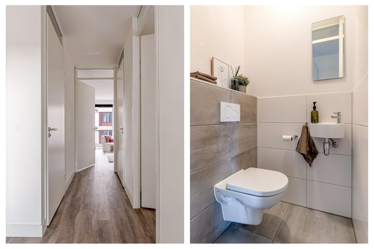 The apartment is ideally located in the Homeruskwartier district. The Almere-Poort train station and the cozy espresso bar "Meetpoint" are just a few minutes' bike ride away. Bus stops, the Homerusmarkt, a supermarket, shops, takeaways, and schools are all within walking distance. The surrounding area offers plenty of recreational opportunities, including Cascade and Homerus Park, the Pampushout forest, Muiderstrand beach, and the beautiful dune area with its marina on Lake IJmeer.