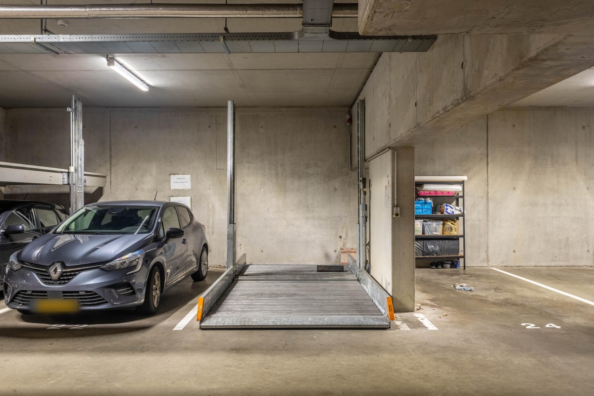 The parking space consists of a convenient parking lift, allowing two cars to be parked one above the other in a single spot.