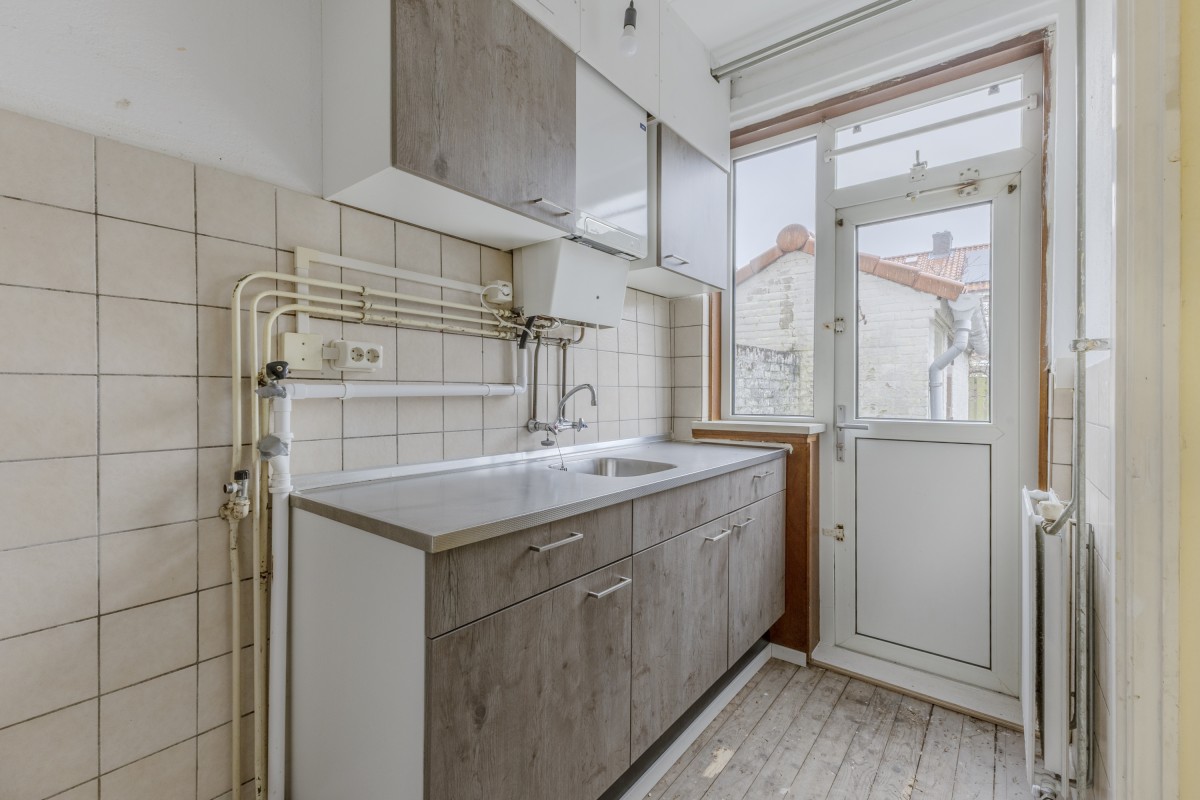 Lees verderThe living room is a spacious "through-room" (doorzonkamer) that benefits from natural light from both sides, offering ample space to create a cozy dining and seating area. The kitchen is located in a separate room and offers plenty of possibilities to be customized to your preference. Additionally, the kitchen features ample storage space, both under the stairs and in the built-in cupboard.