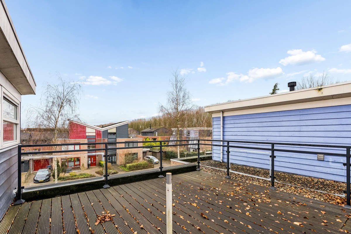 Location: This unique, low-noise house functions as a sound barrier and is situated at the rear of Vrijheidsdreef, the connecting road between Almere Stad and Almere Buiten. The Fanny Blankers Koen sports park is just a stone's throw away. The house is located near Fanny Blankers Koen Park/Bos der Onverzettelijken (Forest of the Unconquerable) and the Leeghwater recreation lake is within walking distance. The A6 and A27 highways are easily accessible, and the bus stop is also within walking distance, with direct connections to Parkwijk and Centraal train stations every 7 minutes. A wide variety of local amenities, including a small shopping center, restaurant, snack bar, community center, daycare center, health center, and several primary schools, are nearby. A child-friendly and pleasant neighborhood.