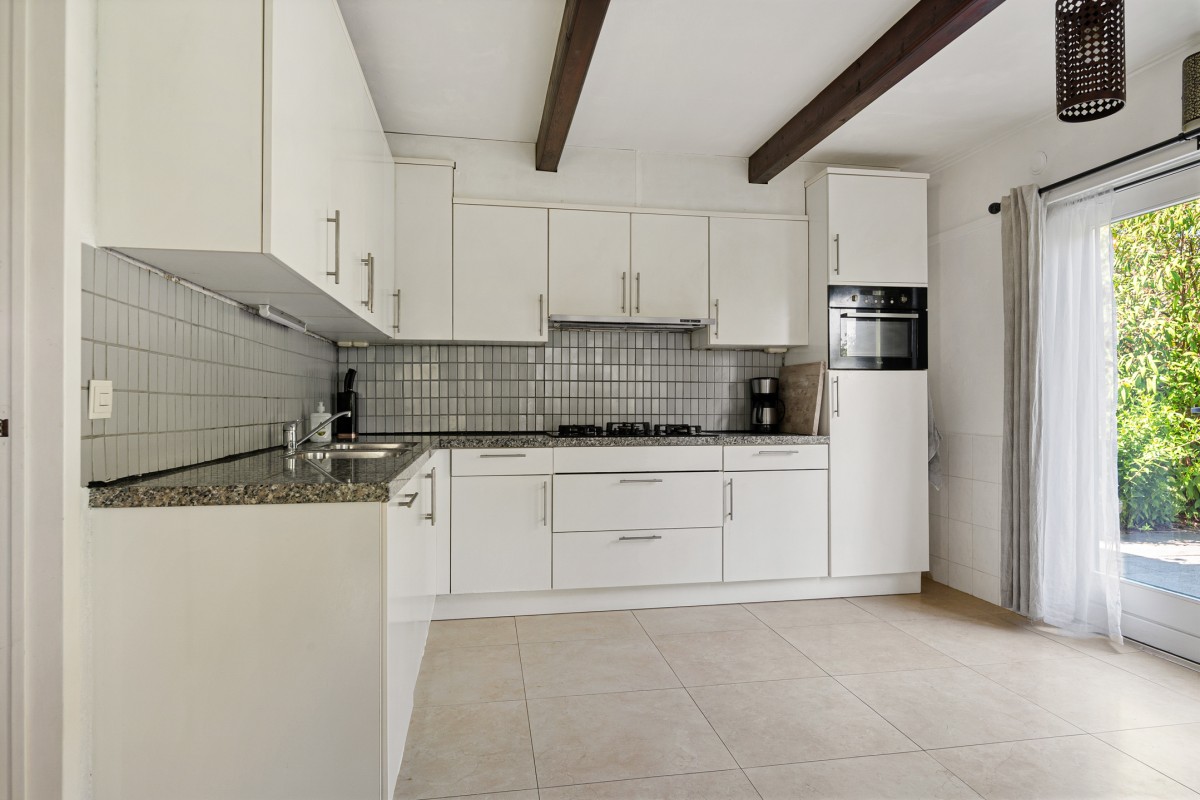 At the rear you will find the kitchen, equipped with a gas stove, combi-oven, and extractor hood. Practical and efficiently designed, making cooking a pleasure. Adjacent is the utility room, ideal as extra storage space and fitted with connections for a washing machine and dryer.