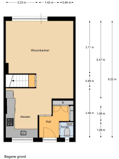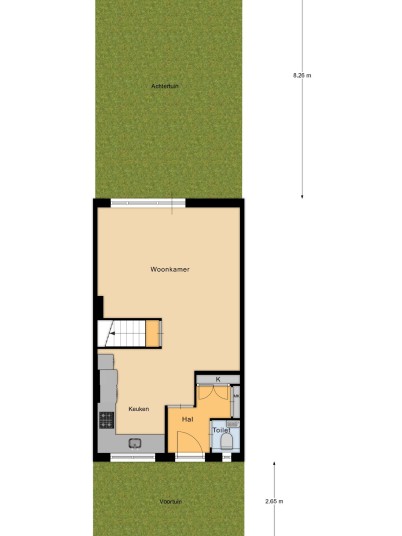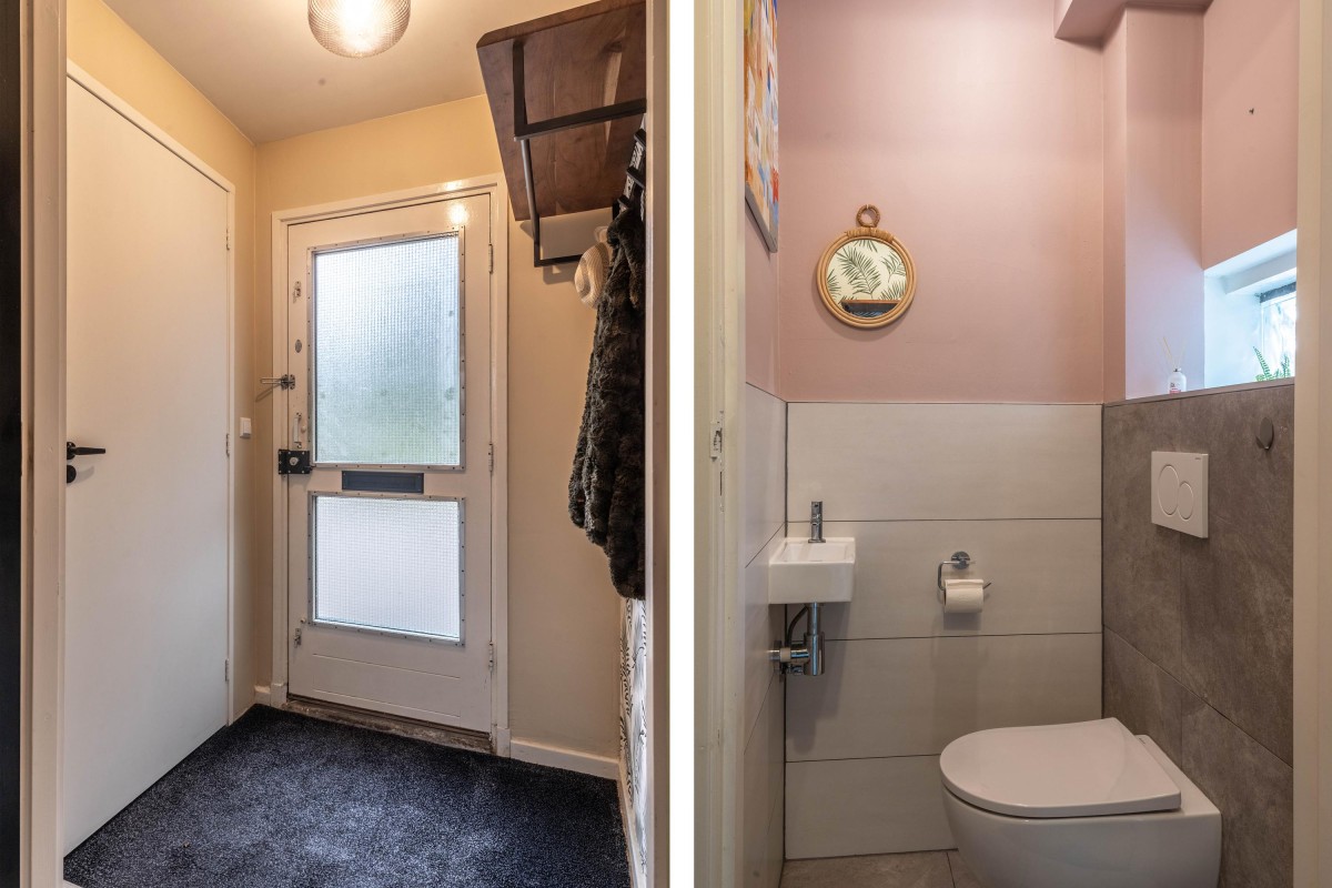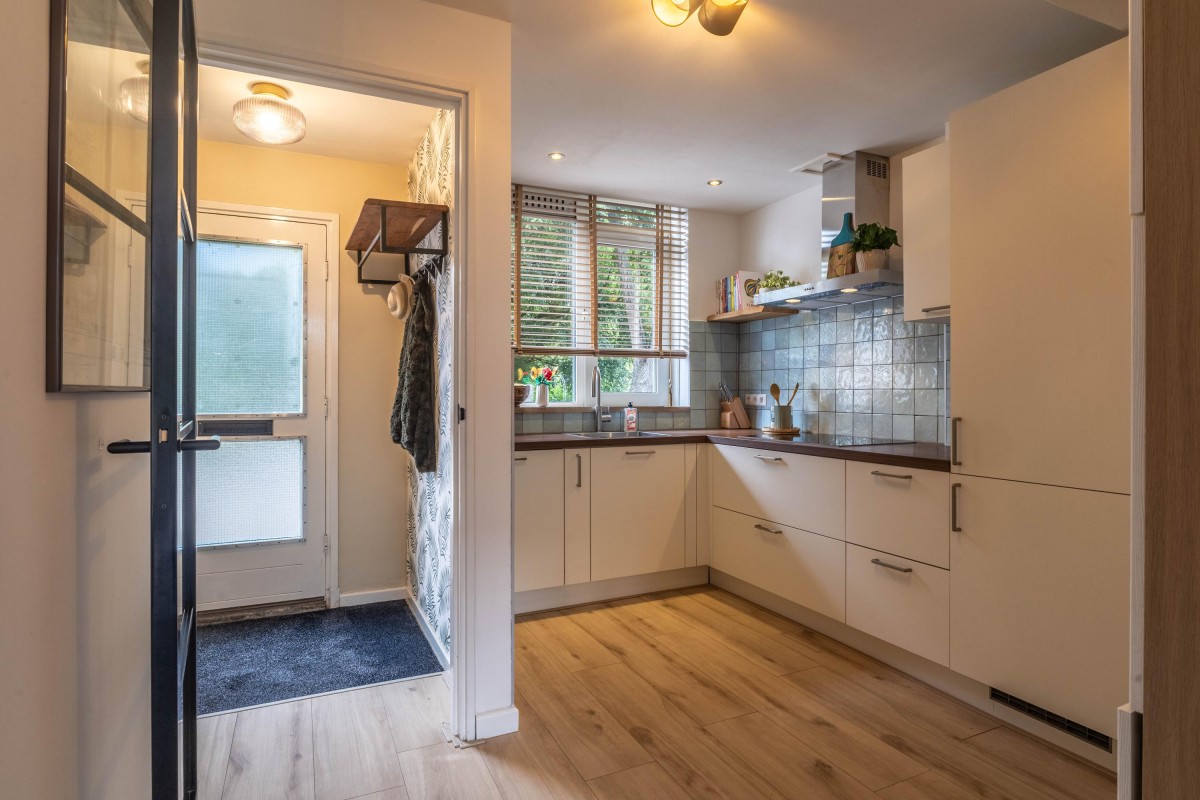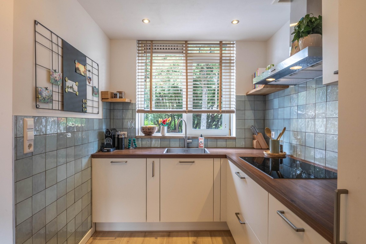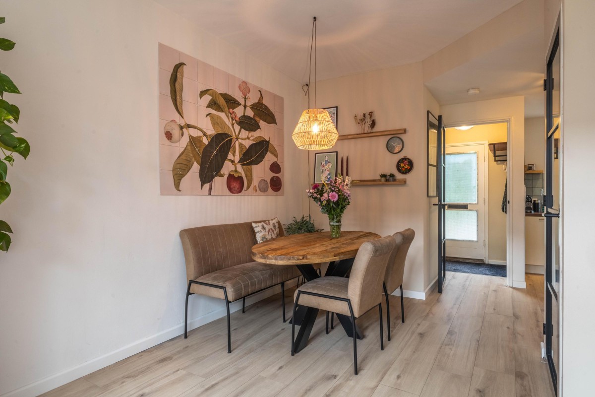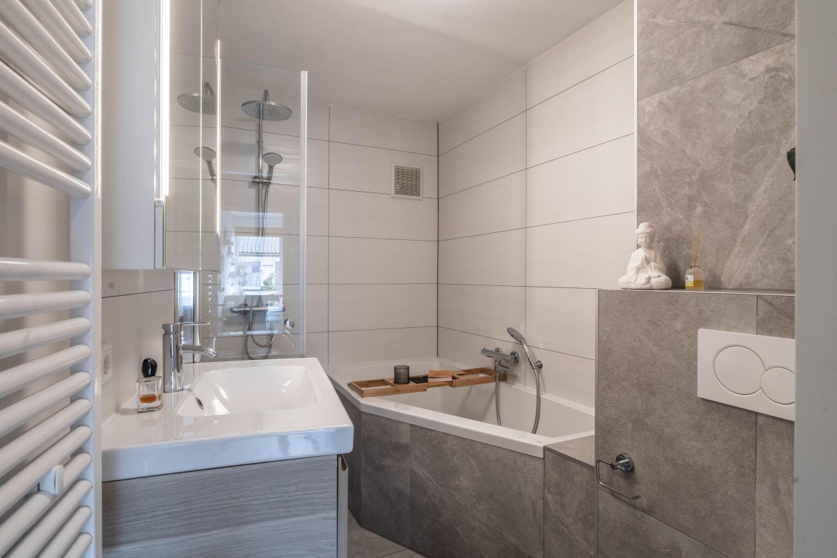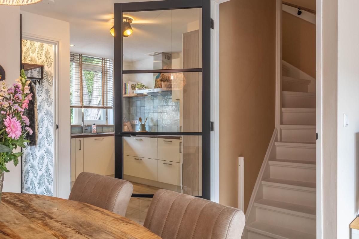 Entrance, spacious hall with storage/wardrobe, meter cupboard, and toilet. The semi-open modern kitchen is equipped with high-quality built-in appliances, including a dishwasher, extractor hood, Quooker, oven, and a combination microwave/oven. The bright living room overlooks the beautifully sunny south-facing backyard – perfect for enjoying long summer days together. The ground floor has underfloor heating. An awning provides shade if desired. A glass door gives access to the stairs to the first floor.