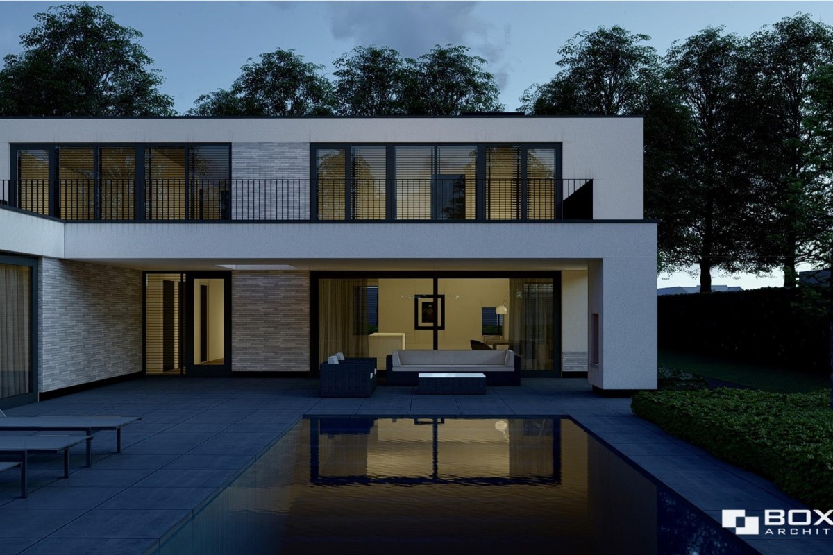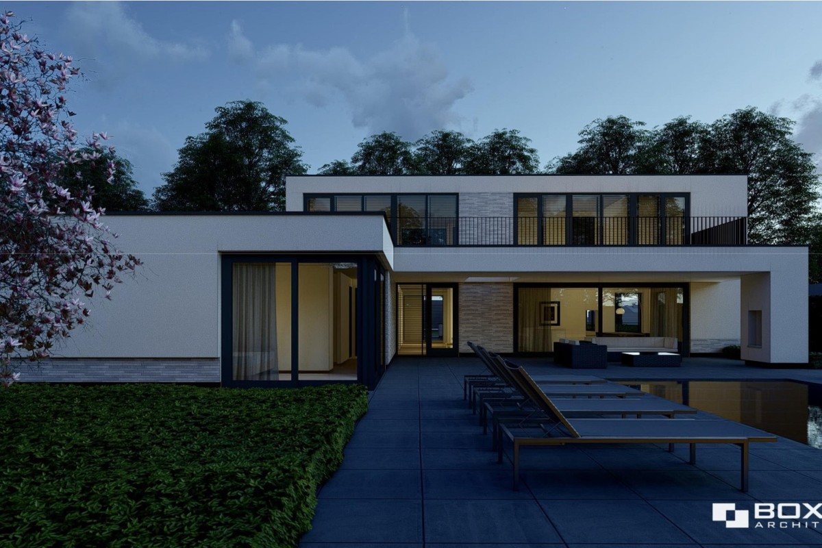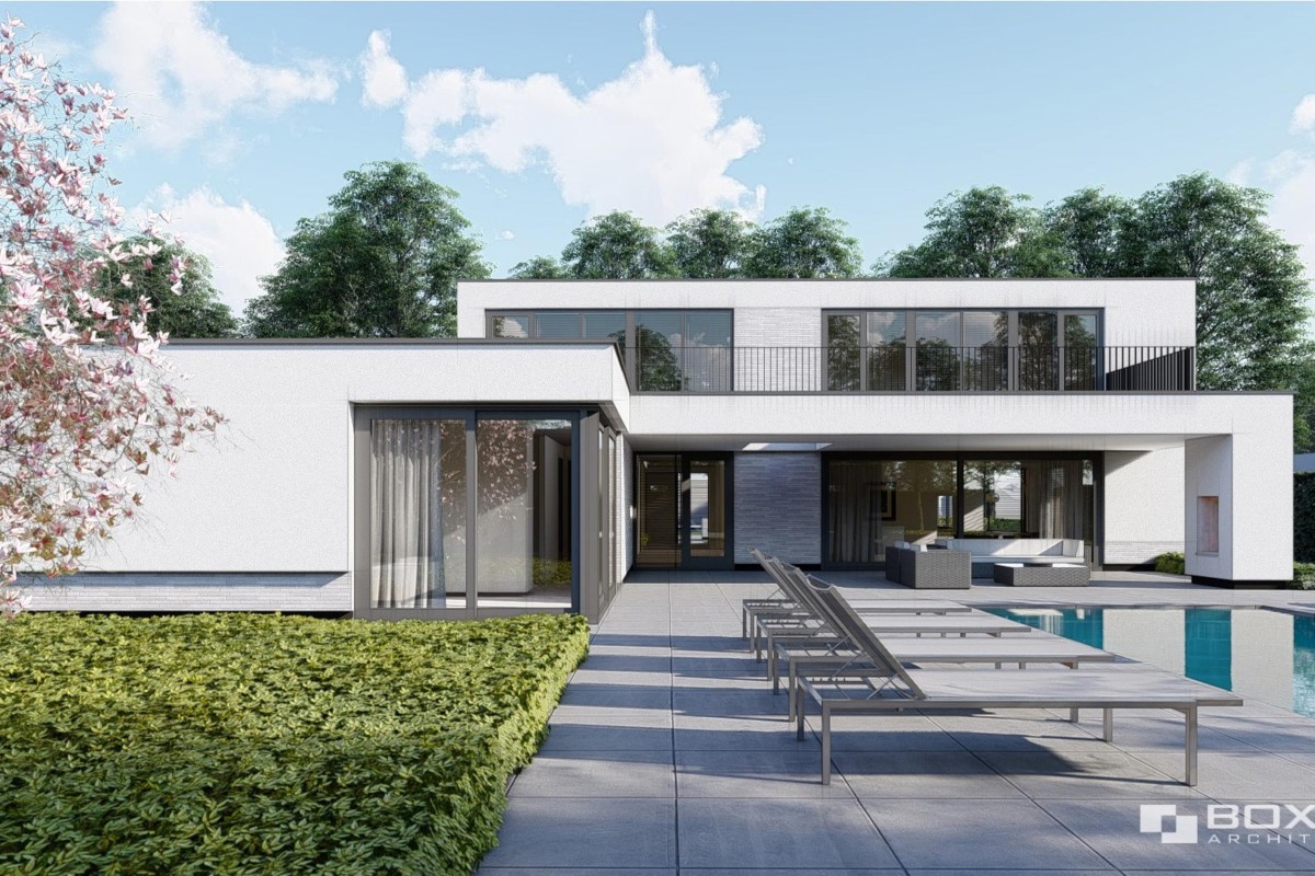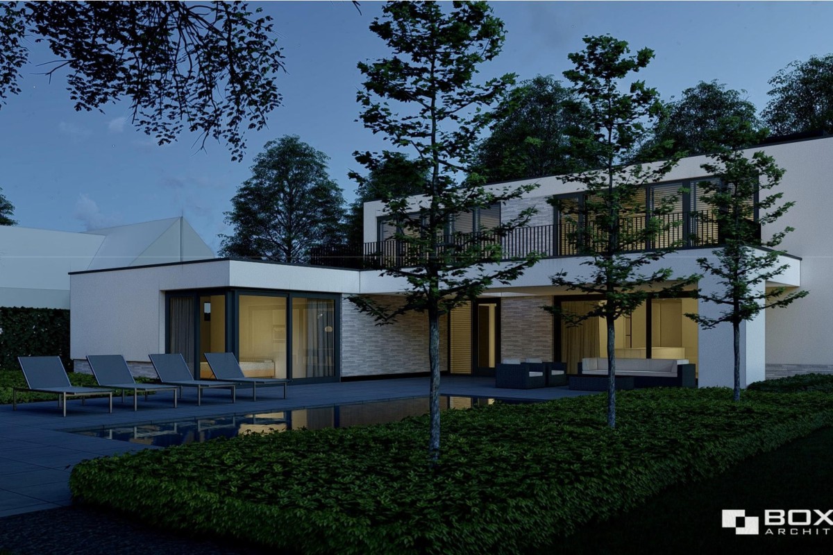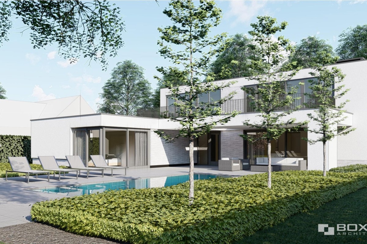 De artist impressies geven een goed beeld van de nieuw te bouwen woning. De nieuwe woning zou binnen het plan voorzien worden van alle denkbare luxe verdeeld over 3 verdiepingen. Onderdeel daarvan zijn 11 kamers, 2 badkamers, een dubbele garage, overkapping en een zwembad waar de heipalen reeds voor geheid zijn.