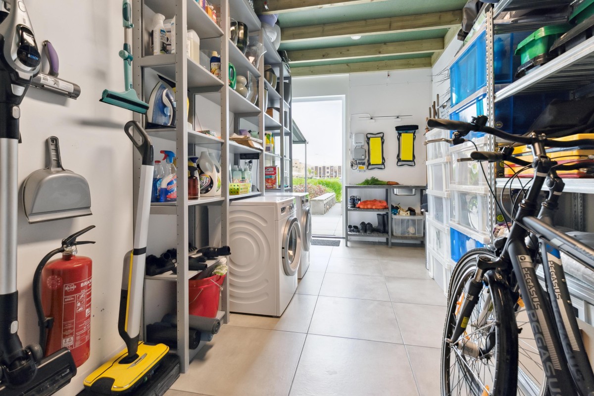 Immediately adjacent to the kitchen is a utility room, housing the inverter for the solar panels and the mechanical ventilation system. This space offers ample space for a shelving unit, allowing you to easily create additional, organized storage space.