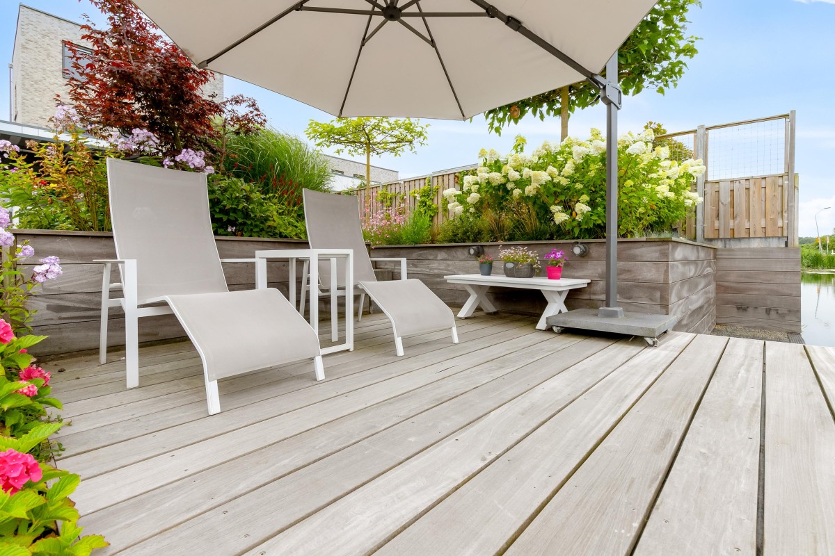 Beautiful terraces with high-quality paving alternate with green grass, attractive fencing, and a convenient water connection.