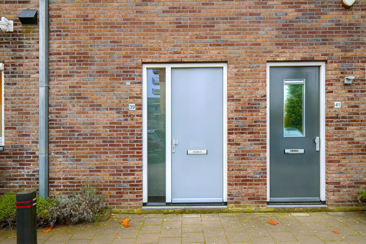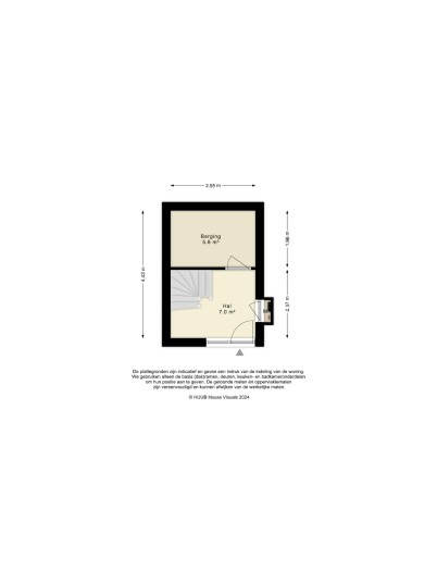 Private parking in front of the door. Entrance hall with meter cupboard, spacious storage room, and stairs to the first floor.