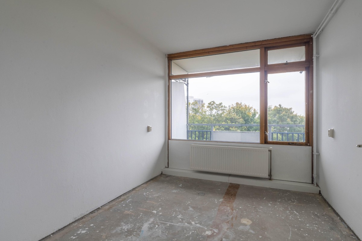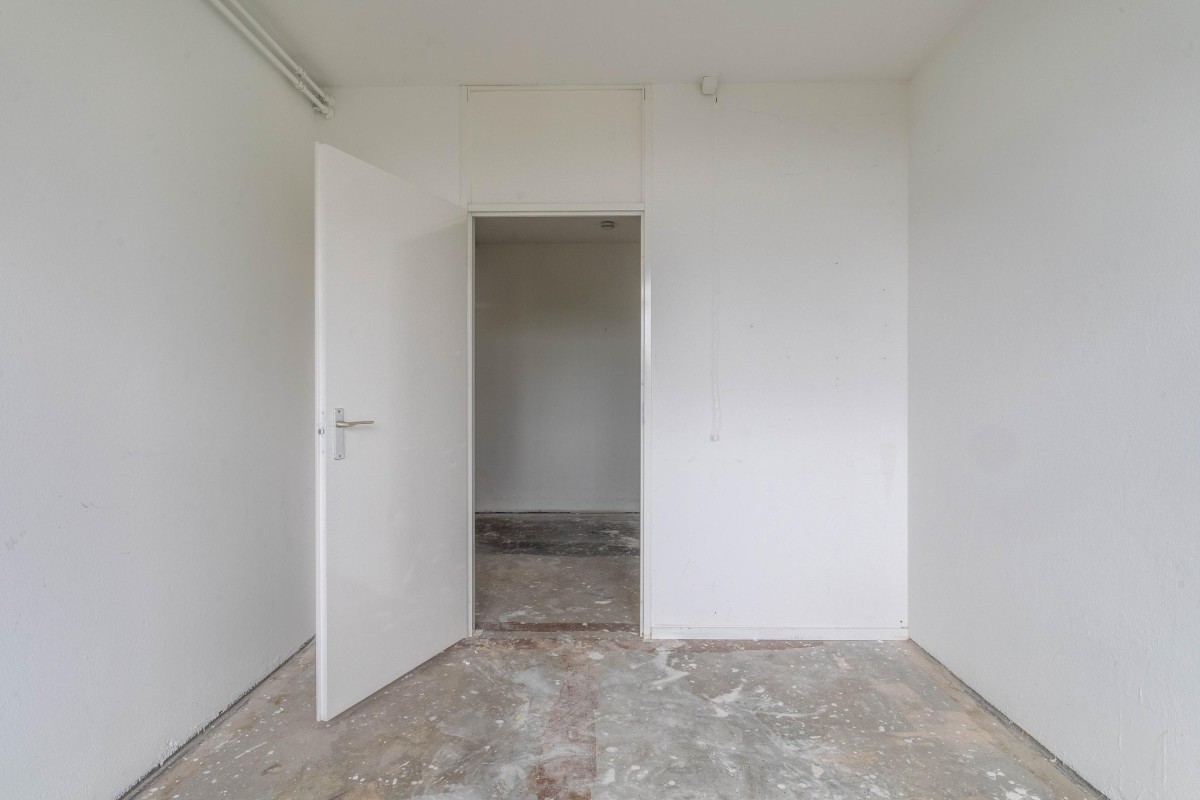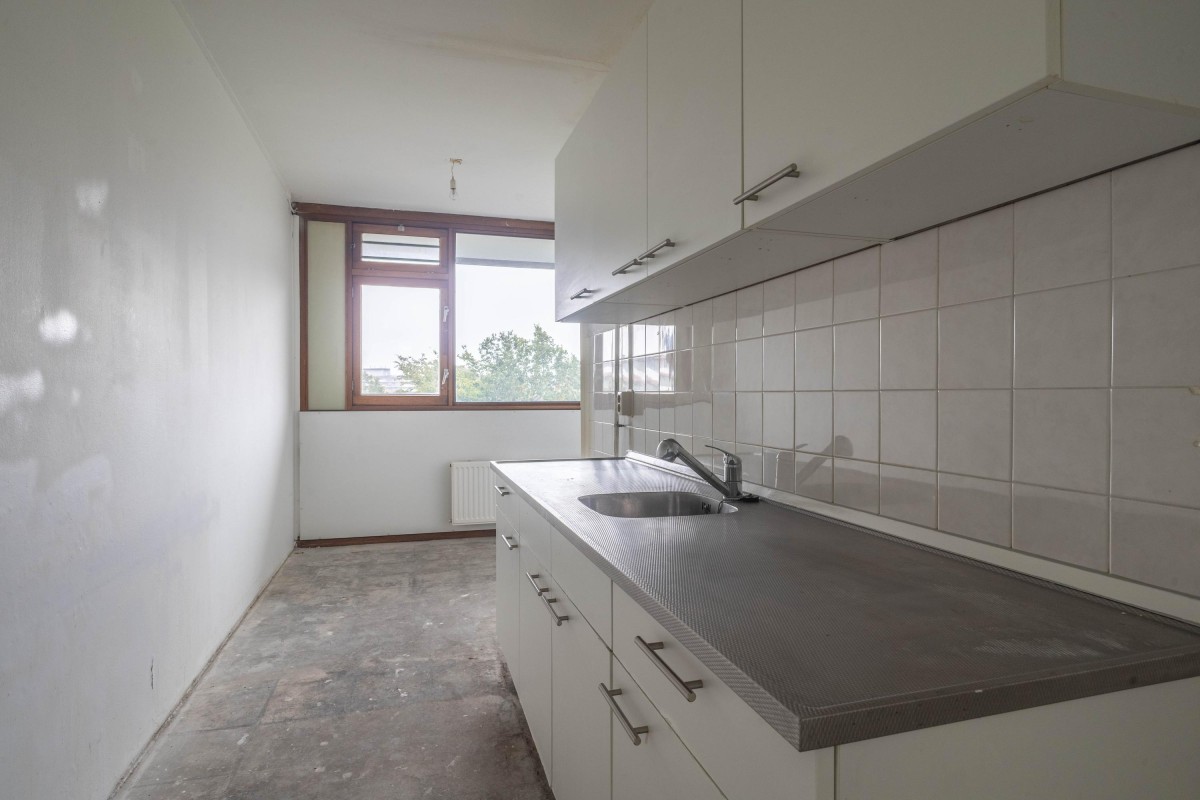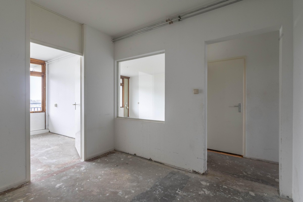 Via het gemeenschappelijke trappenhuis neemt u de lift naar de zesde verdieping, waarna u via een gedeelde galerij bij uw appartement komt. Bij binnenkomst komt u in een hal die toegang biedt tot de meterkast, de keuken en de rest van de woning. Aan de voorzijde bevindt zich de eerste goed bemeten slaapkamer, evenals de keuken, die nog naar eigen smaak kan worden afgewerkt.
