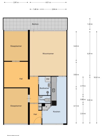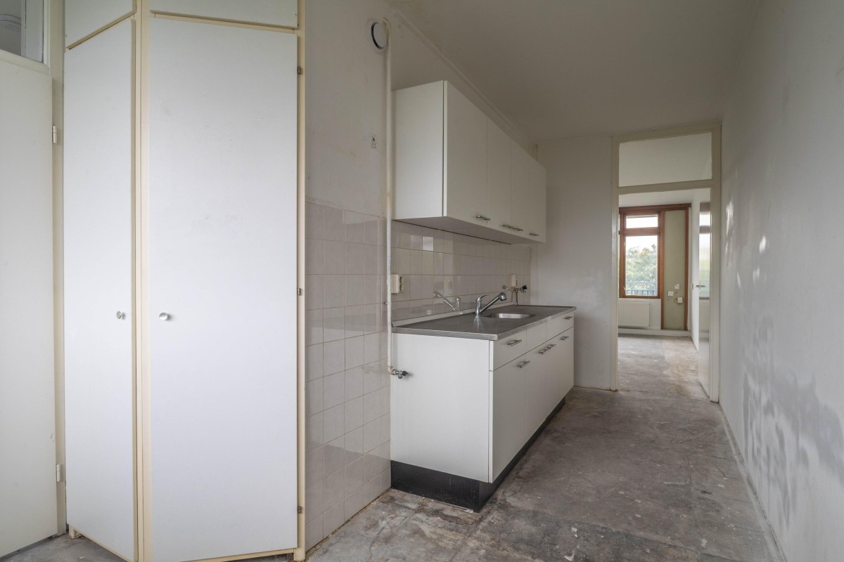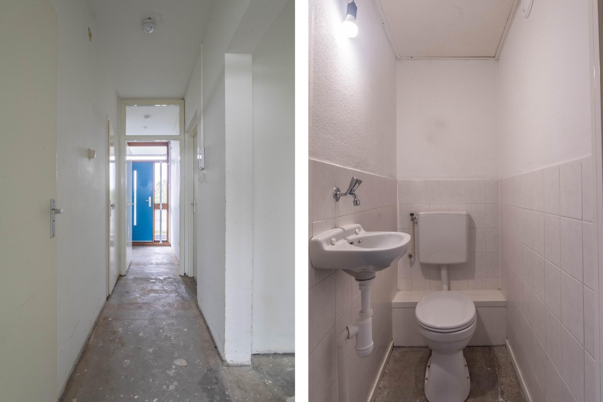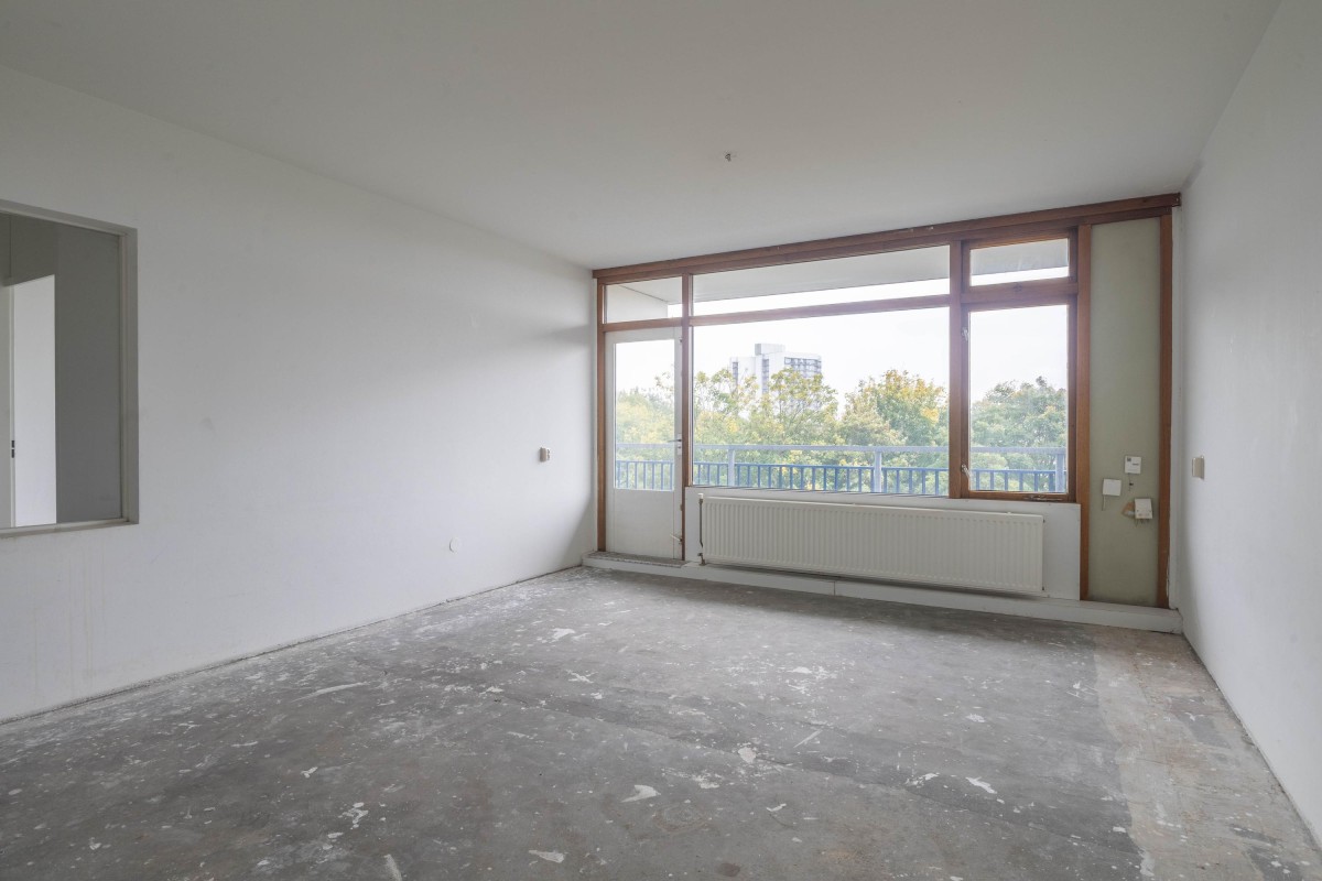 Via het gemeenschappelijke trappenhuis neemt u de lift naar de zesde verdieping, waarna u via een gedeelde galerij bij uw appartement komt. Bij binnenkomst komt u in een hal die toegang biedt tot de meterkast, de keuken en de rest van de woning. Aan de voorzijde bevindt zich de eerste goed bemeten slaapkamer, evenals de keuken, die nog naar eigen smaak kan worden afgewerkt.