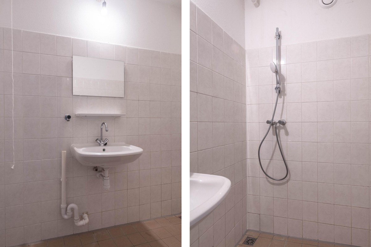 Via een centrale hal bereikt u de badkamer, die is uitgerust met een douche, wastafel en een aansluiting voor de wasmachine. Het toilet, met fonteintje, bevindt zich in een separate ruimte.
