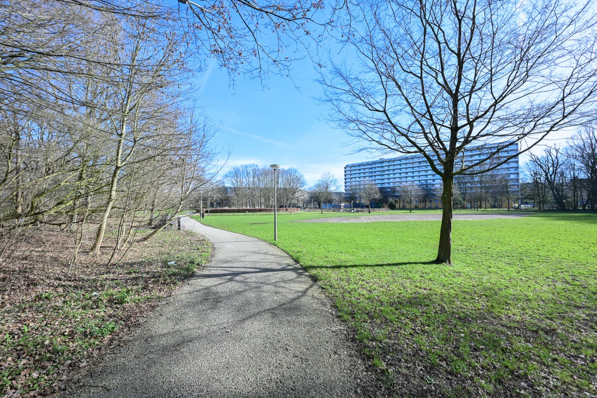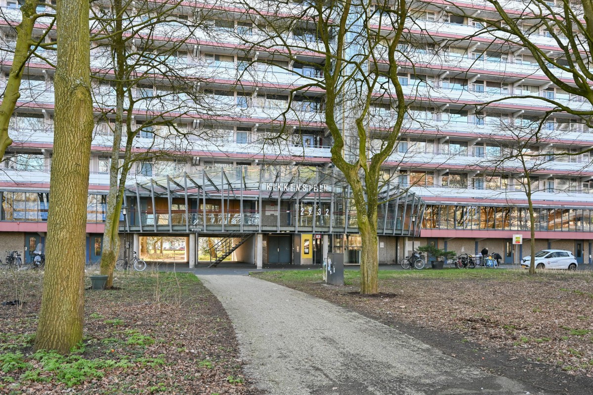 The Kikkenstein apartment complex is situated in a park-like setting in the Bijlmer Oost district, an area designated as a protected cityscape (the 'Bijlmermuseum'). Here, you live in an oasis of green and quiet while keeping city life within reach. Shopping is effortless: the "De Kameleon" shopping center is literally around the corner, featuring Albert Heijn, Jumbo, Aldi, and various specialty shops.