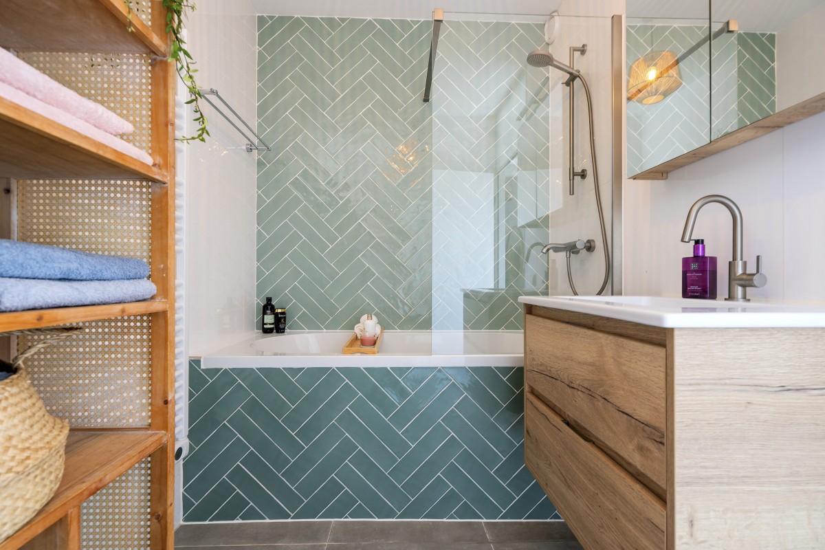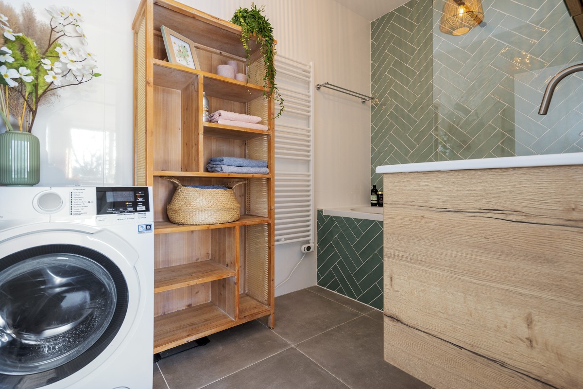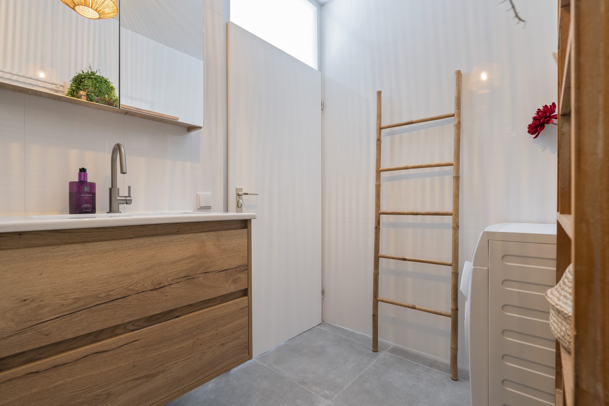 Lees verderThe neighborhood features a health center, primary school, and childcare facilities. Several shopping centers, such as Reigersbos and Ganzenpoort, are just a few minutes by bike, and Maxis Muiden is a short drive away.