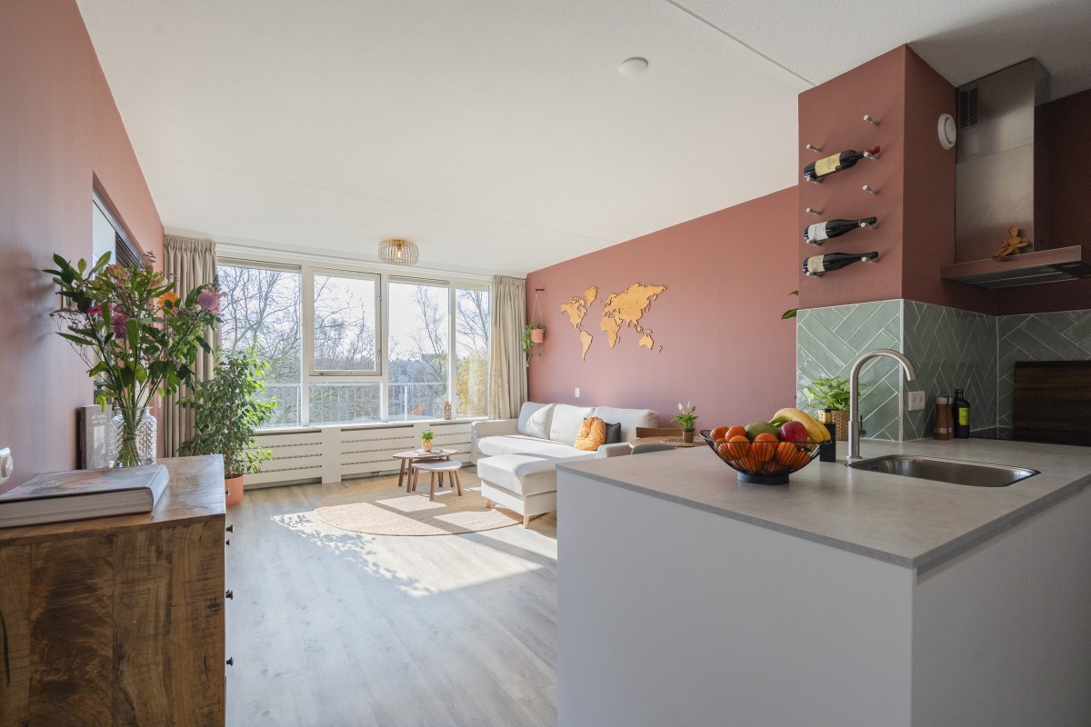 This beautiful 3-room apartment is move-in ready, located on the fourth floor, with an unobstructed view and a south-facing balcony. With a living area of approximately 69 m², two external storage units, and a private covered parking space, this home offers plenty of comfort. Additionally, the ground lease has been permanently bought off. The apartment is part of the Nellestein complex, near Gaasperpark and close to Nelson Mandelapark. The area offers plenty of walking, cycling, and recreational opportunities, including a sailing club and tennis club within walking distance.