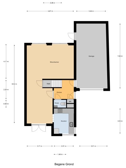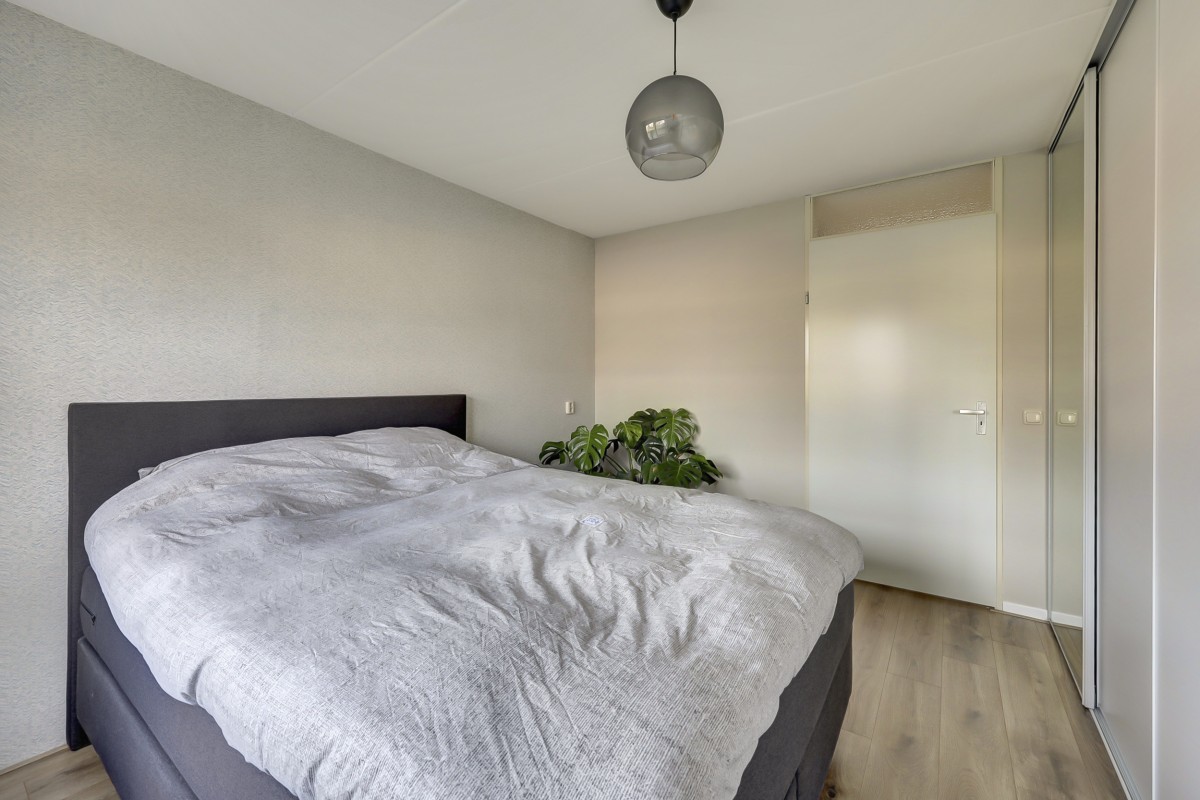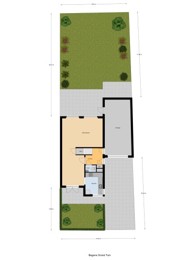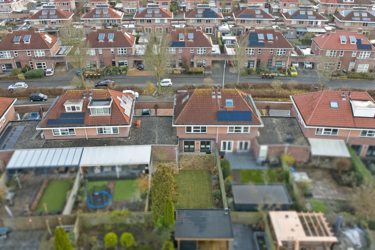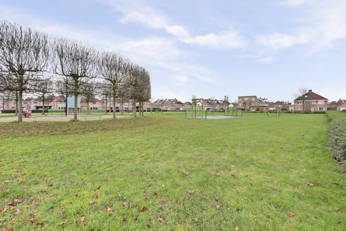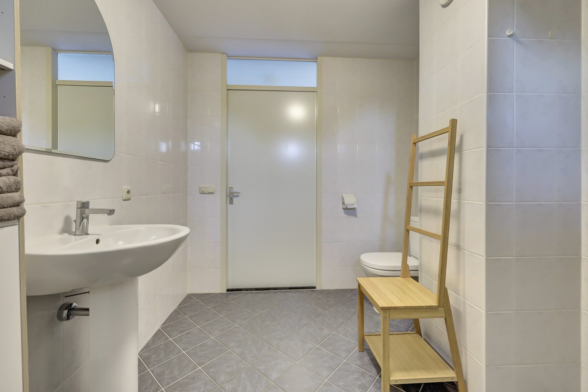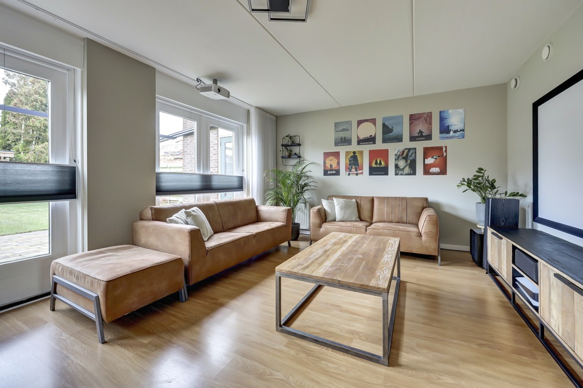 Begane grond: entree, lichte hal met meterkast en garderobe, lichte toiletruimte met toilet en fonteintje, straatgerichte eethoek met erker en uitzicht op de straat. De keuken is in hoek opgesteld en voorzien van veel werkruimte en kastruimte alsmede een ingebouwde vaatwasser, oven, gaskookplaat met afzuiging en een losse koelkast. Aan de achterzijde van de woning is een ruime woonkamer over de gehele breedte van de woning gesitueerd. Vanuit de woonkamer toegang tot de tuin. De tuin is op het westen gesitueerd en mooi aangelegd met o.a. een groot terras tegen de woning en een recent aangelegd gazon. De aangebouwde stenen garage is bereikbaar middels een loopdeur vanuit de tuin en een loopdeur binnendoor vanuit de hal.