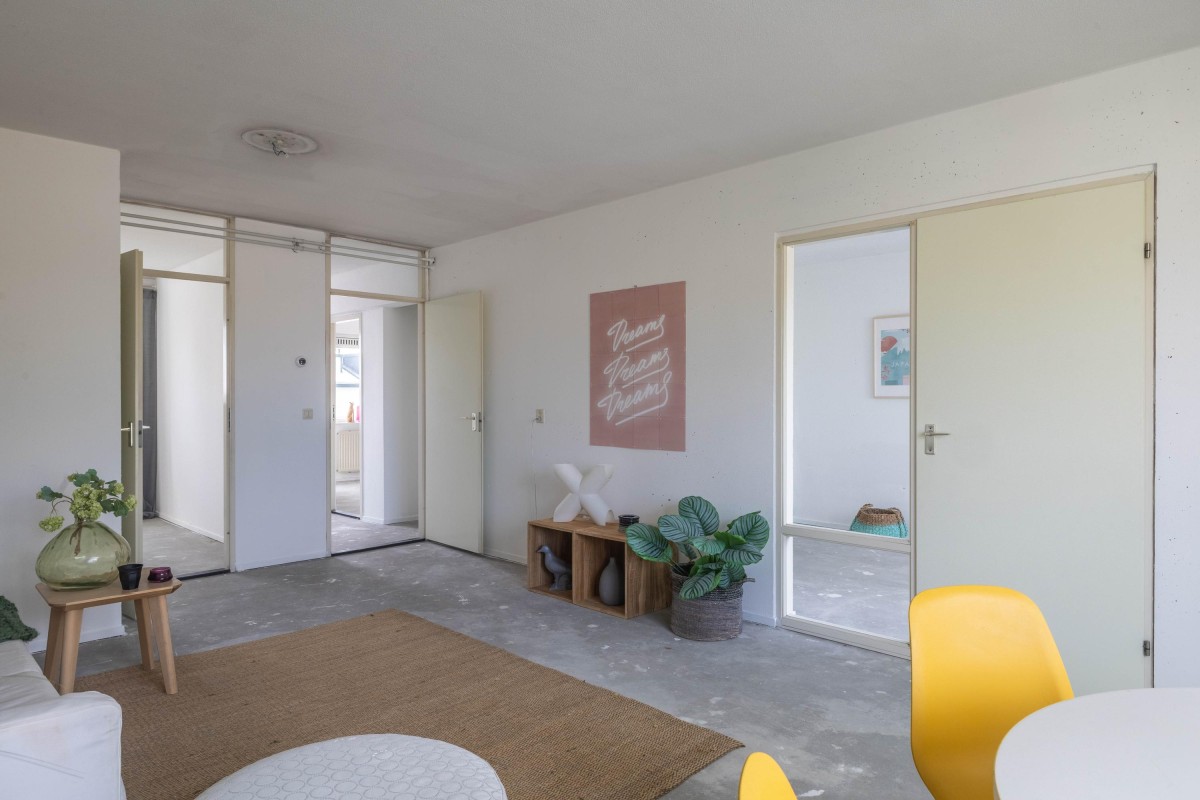 Lees verderThe spacious living room can be entered both from the hallway and from the bedroom, and benefits from plenty of natural light thanks to the large window at the rear. The kitchen, accessible from the living room, is located at the front and includes a practical storage cupboard containing the central heating boiler (2021).