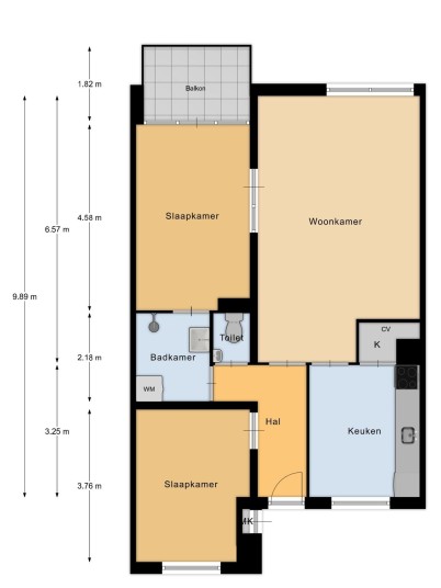 Through the communal staircase you reach the apartment on the second (and top) floor. From your private gallery you arrive at the front door. You enter into the hallway, which provides access to several rooms. At the front is the first well-sized bedroom. The bathroom is fitted with a shower, washbasin and washing machine connection. The toilet is located in a separate room. From the bathroom you have access to the second, larger bedroom. This room provides access to the southwest-facing balcony, where you can enjoy the sun.