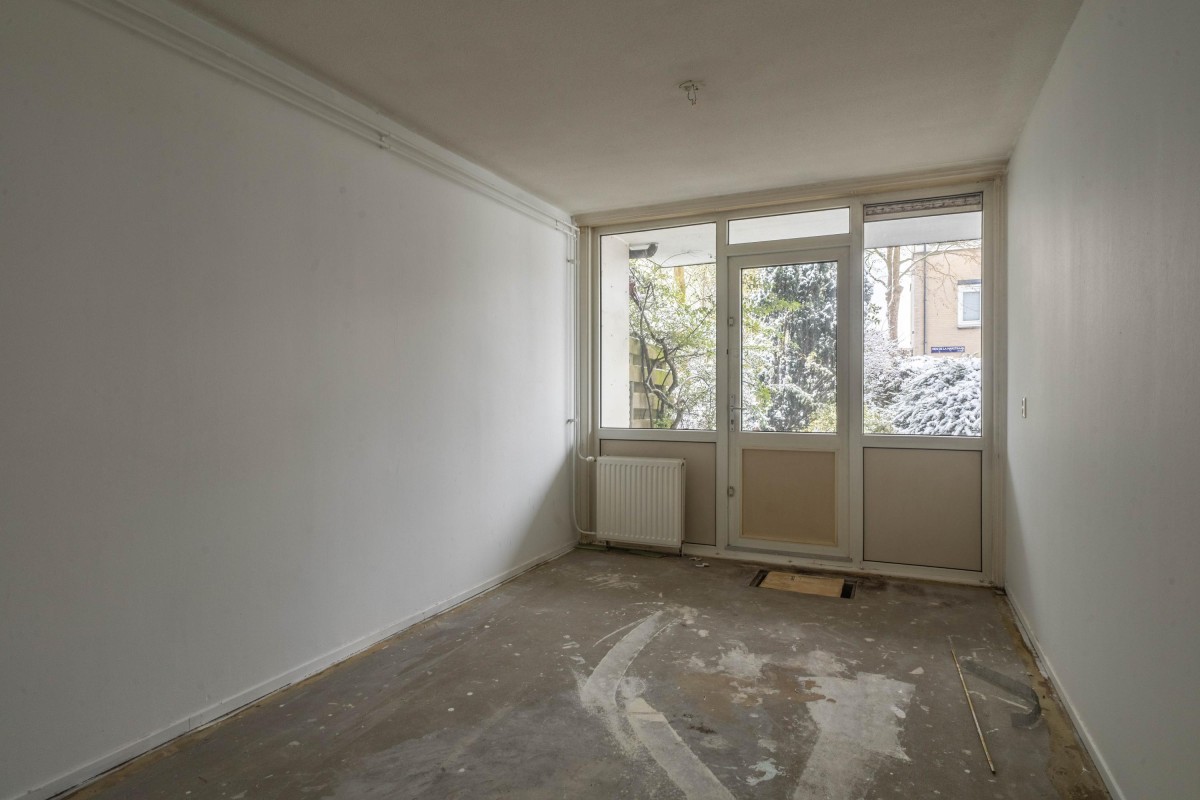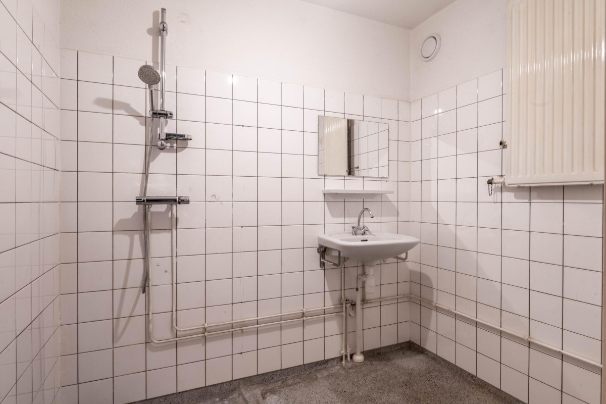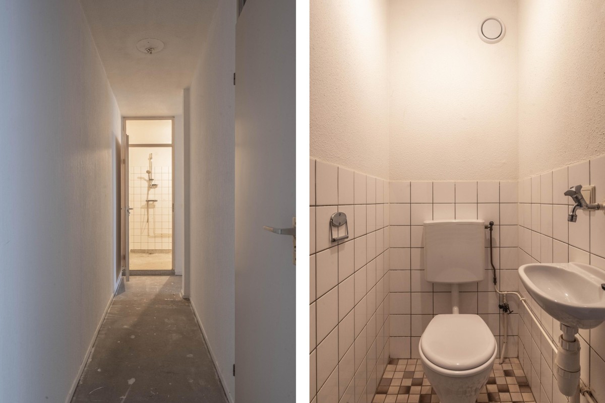 Via the communal staircase, you reach the front door of this ground-floor apartment. The meter cupboard is accessible from the shared hallway. Upon entering, you enter the hallway, which provides access to several rooms. On the right side, there is a practical closet for storing coats and shoes. At the front is the kitchen, which can be furnished according to your preferences.