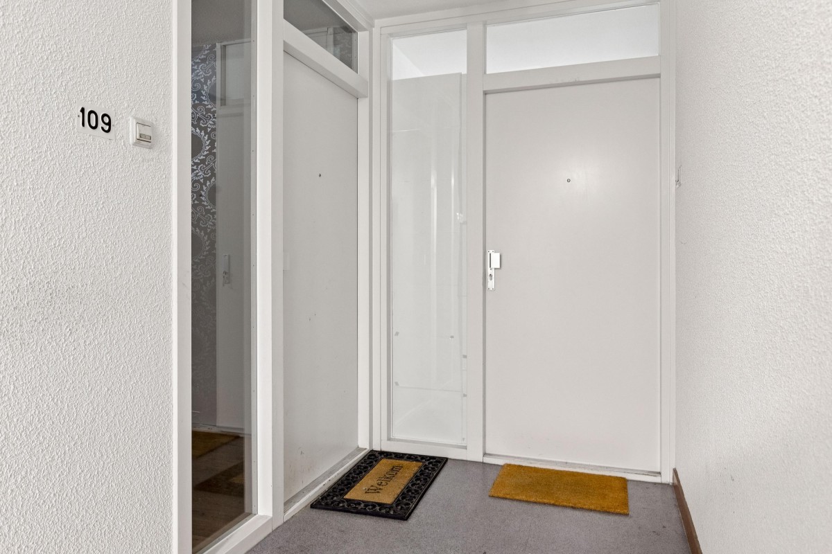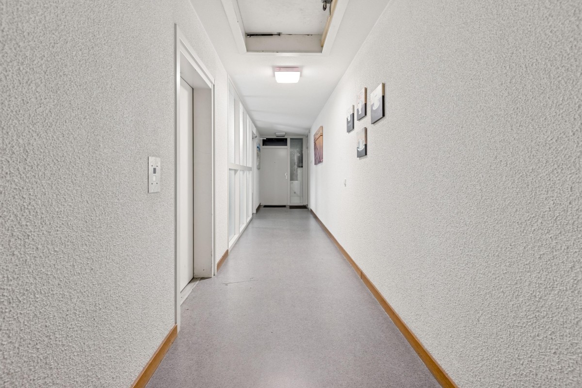 From the enclosed entrance, you have access to the staircase, elevator, and separate storage rooms on the ground floor.