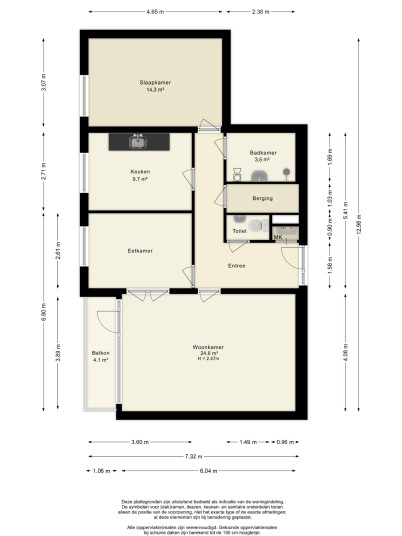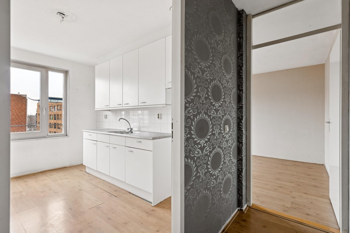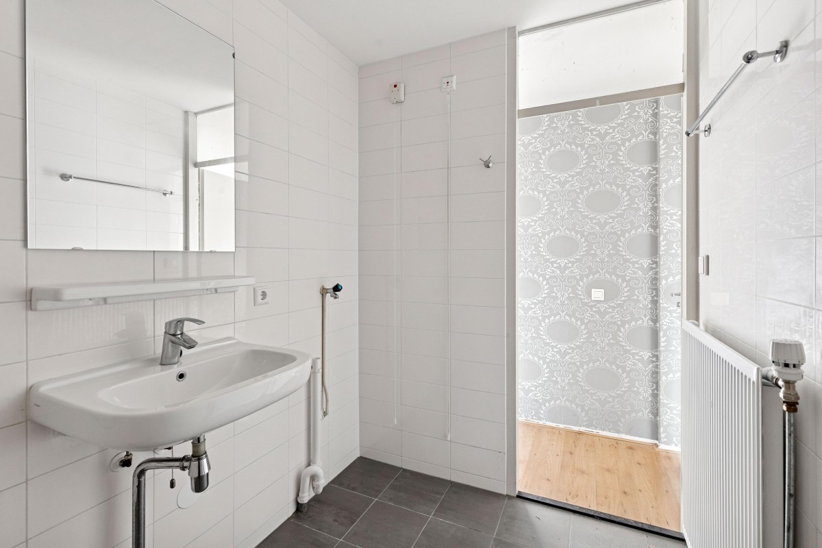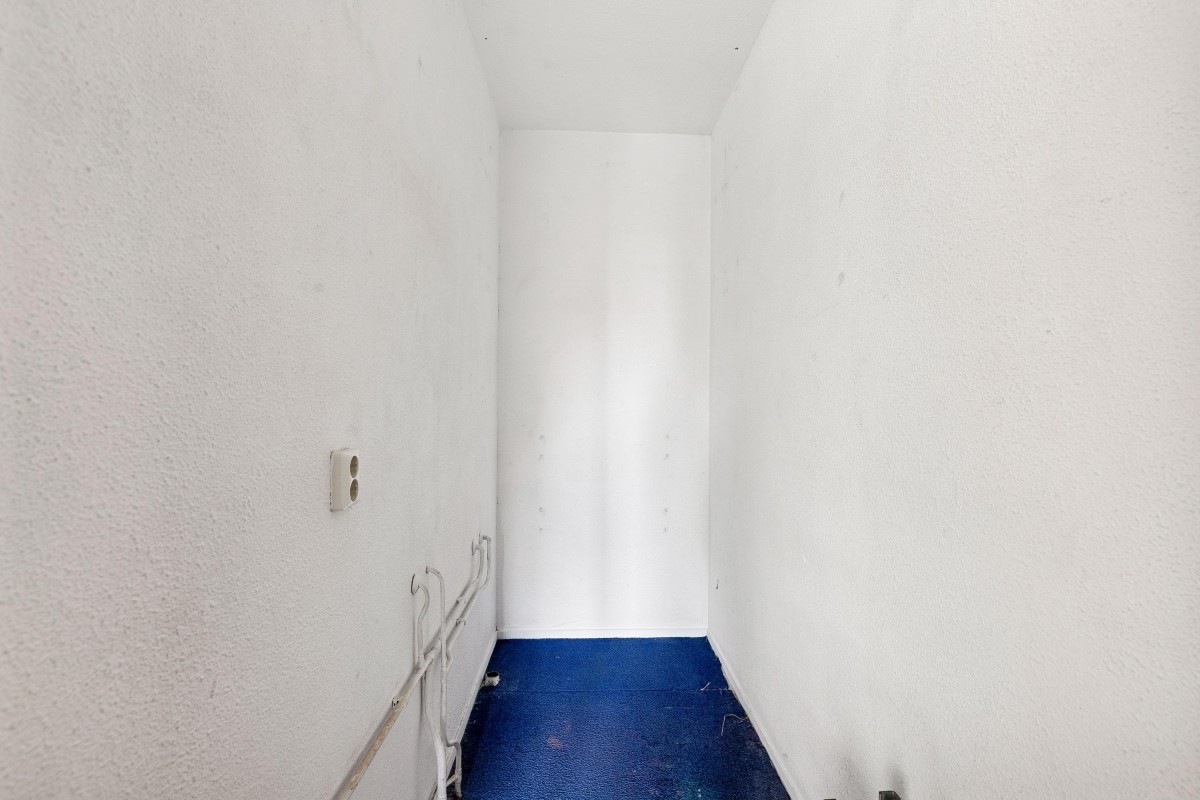 Lees verderThe apartment offers the possibility of expanding the living room by incorporating one of the two bedrooms into the living area. The living room opens onto the southwest-facing balcony. The enclosed, lockable kitchen is equipped with a standard kitchen unit. The bathroom features light-colored tiling, a walk-in shower, a sink, and a connection for the washing machine. The indoor storage room is located next to the bathroom, so the washing machine connection can be easily installed here.