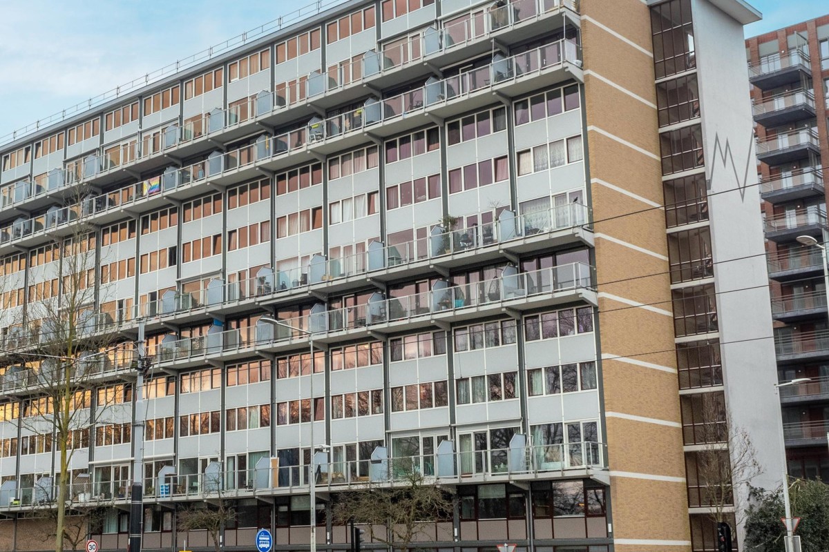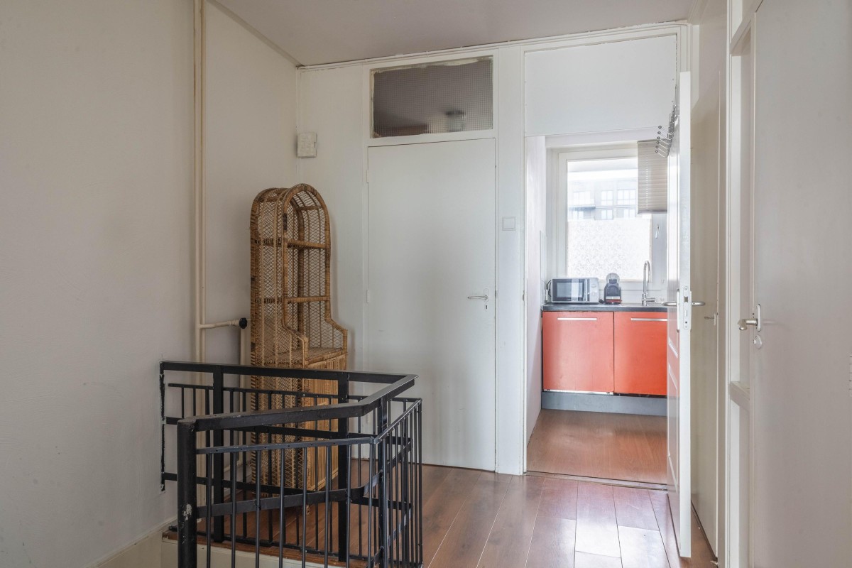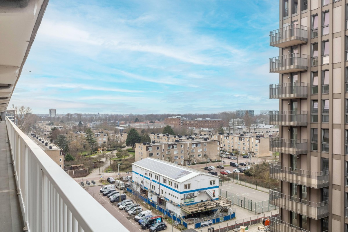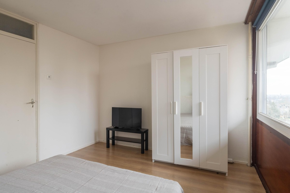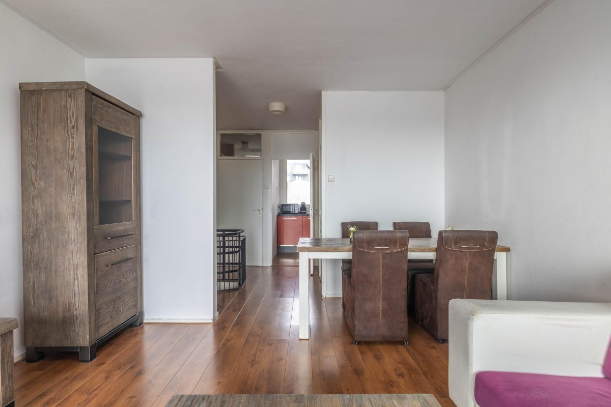 Lees verderThe kitchen is equipped with all necessary built-in appliances, such as a dishwasher, 4-burner gas stove with a designer extractor fan, refrigerator, and built-in oven. The separate toilet features a floating toilet and a washbasin. The living room is located above the tree line and offers an unobstructed view over Sloterplas and the center of Amsterdam. From the living room, you have access to the balcony.