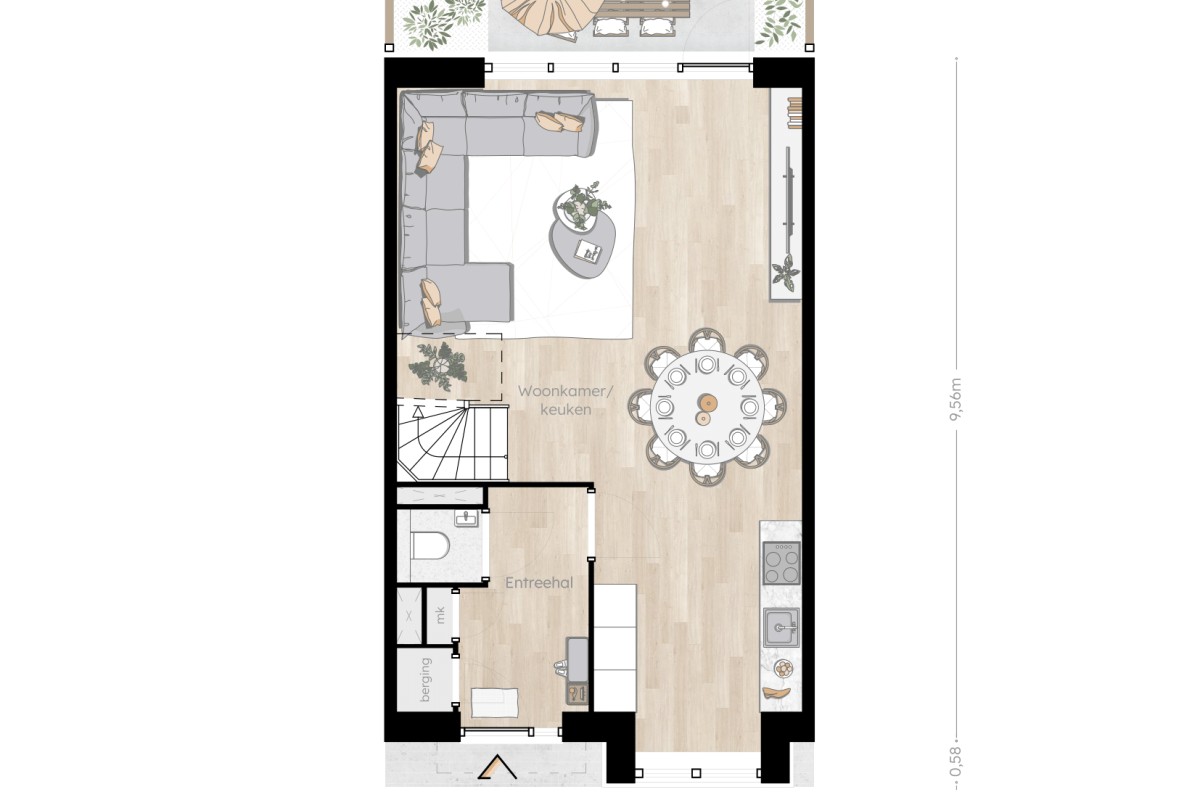 Step into this spacious home of approximately 152 m², where space and light come together in a contemporary design. With a width of 6.00 meters and a depth of 9.