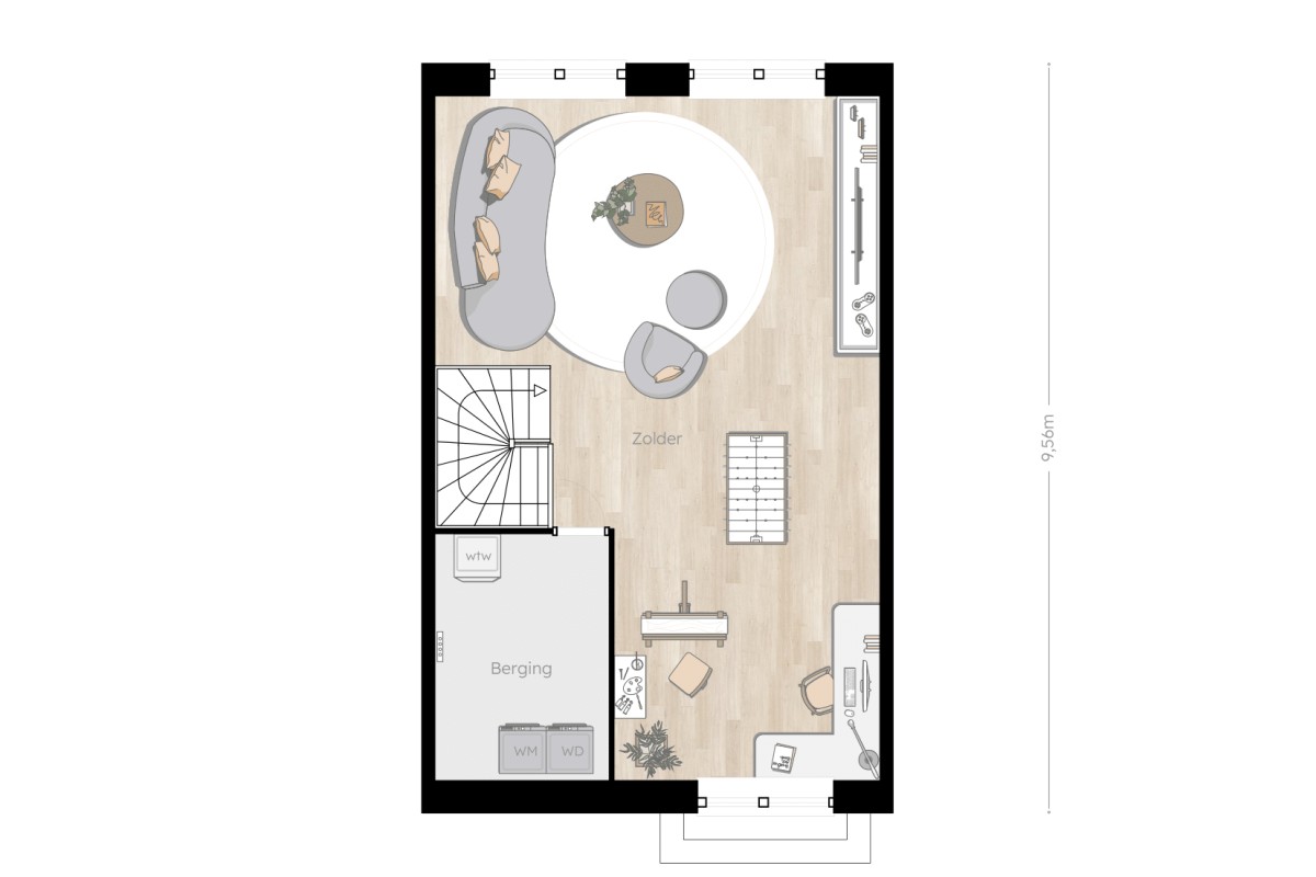 Open second floor of approximately 37 m²