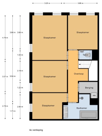 - Four bedrooms and 3 internal storage rooms