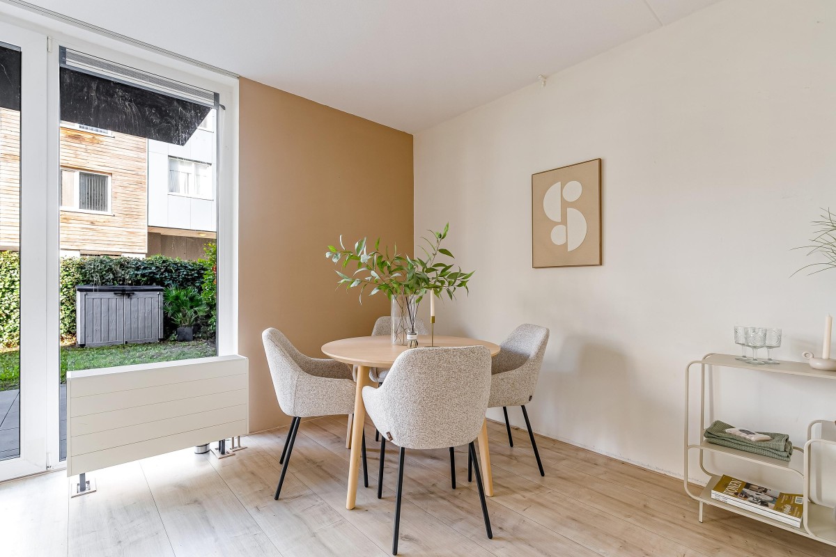 Practical features, such as a storage cupboard with connections for a washing machine and dryer, mechanical ventilation, and light oak laminate flooring, make this apartment not only beautiful but also functional. And with a private parking space and storage unit on the ground floor, you have everything you need for a comfortable lifestyle.