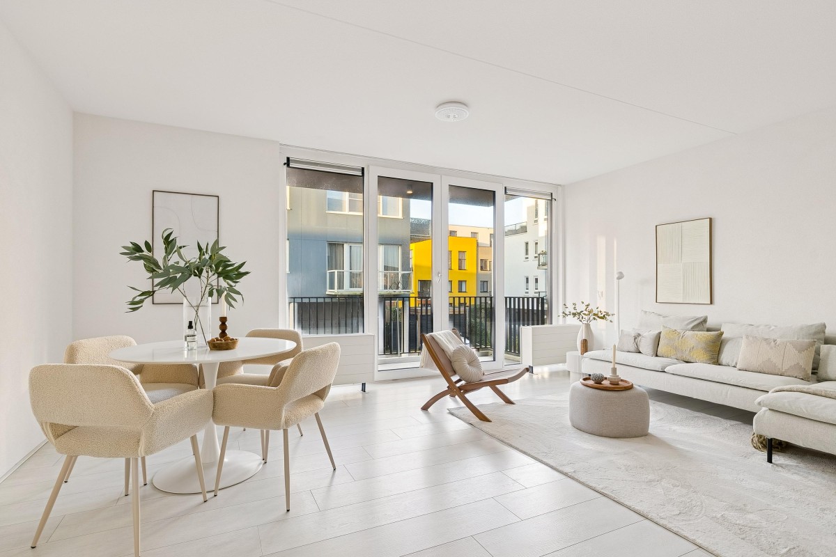 Welcome to this beautiful apartment located on the edge of Almere Poort, in the tranquil Columbuskwartier district. This small-scale complex of 12 apartments, built in 2018, offers a perfect blend of modern urban conveniences and a peaceful setting. With a living area of ??86 m², this apartment is ideal for a small family or those seeking space and comfort.