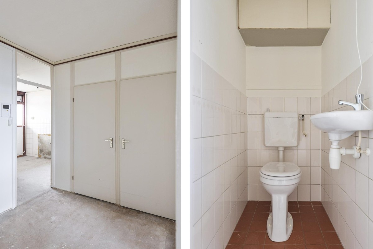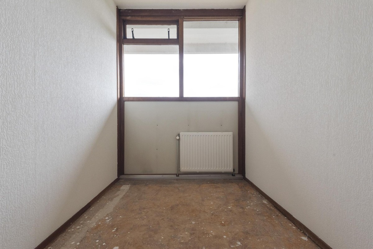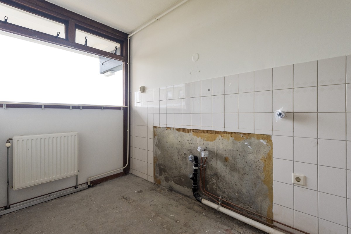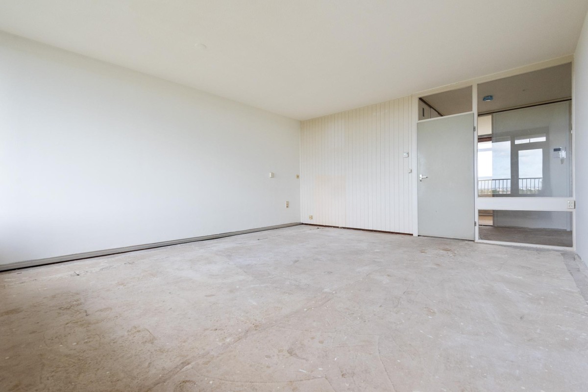 Via the communal entrance, you can take the elevator to the fourteenth floor, where this apartment is located. From the entrance, you have access to the kitchen, which can still be finished to your taste, and the hallway that leads to all rooms.