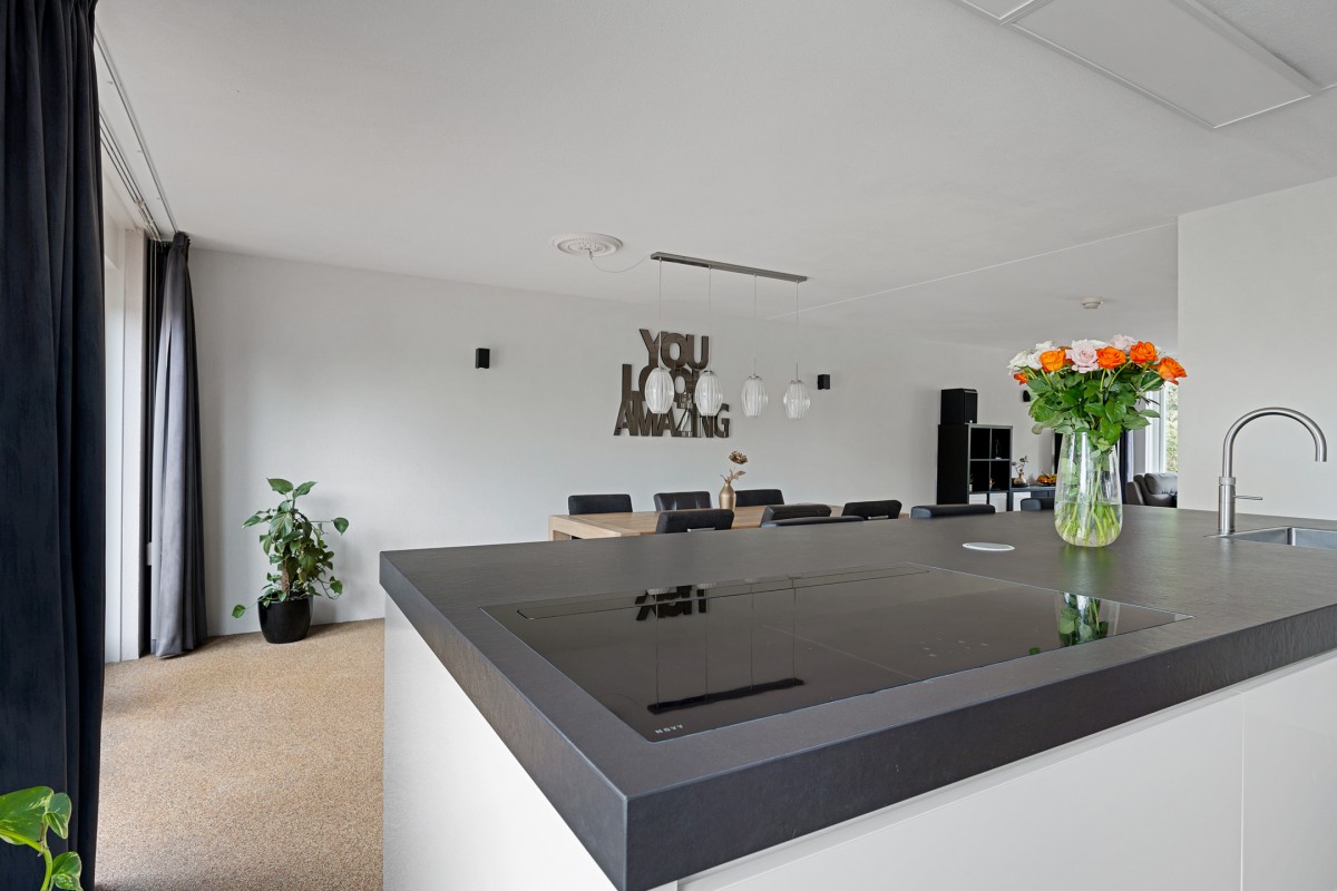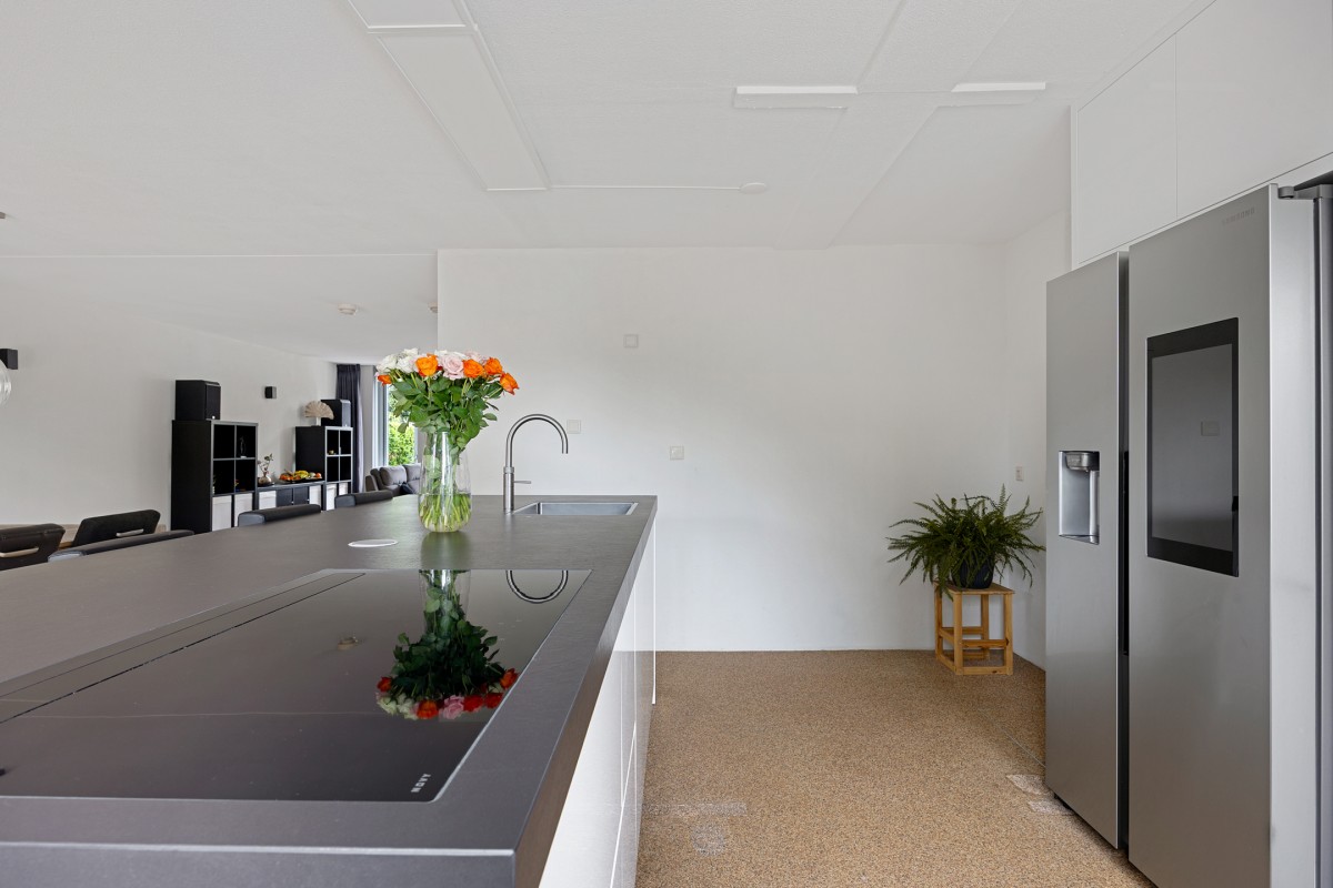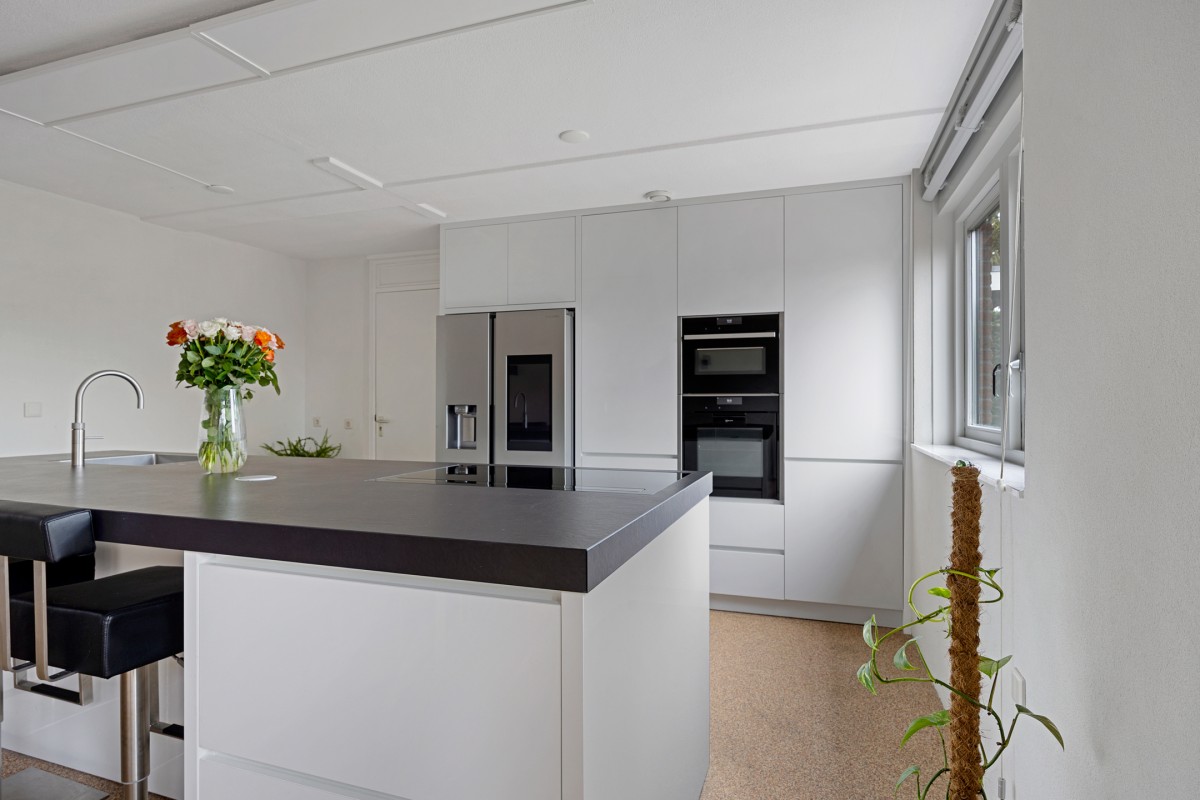 The kitchen, custom-designed in 2019, is equipped with an American fridge, steam/combi oven, combi-microwave, "Quooker," dishwasher, and a wide induction cooktop with integrated extractor. There is plenty of storage space in the drawers and cabinets.