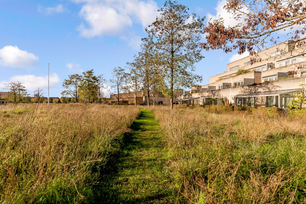 De gemeenschappelijk park is speciaal voor de bewoners van het complex , maar liefst een hectare groot met centraal gelegen de (biologische) zwemvijver. Het zwemgedeelte is 10 x 50 meter, omringd door waterlelies. Het park heeft delen met wilde bloemen en kruiden - de heemtuin, en een ligweide. Met dit mooie weer wordt er volop gezwommen! Je loopt zo de trap af en bent dan direct in de tuin.