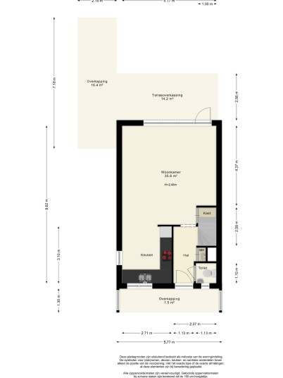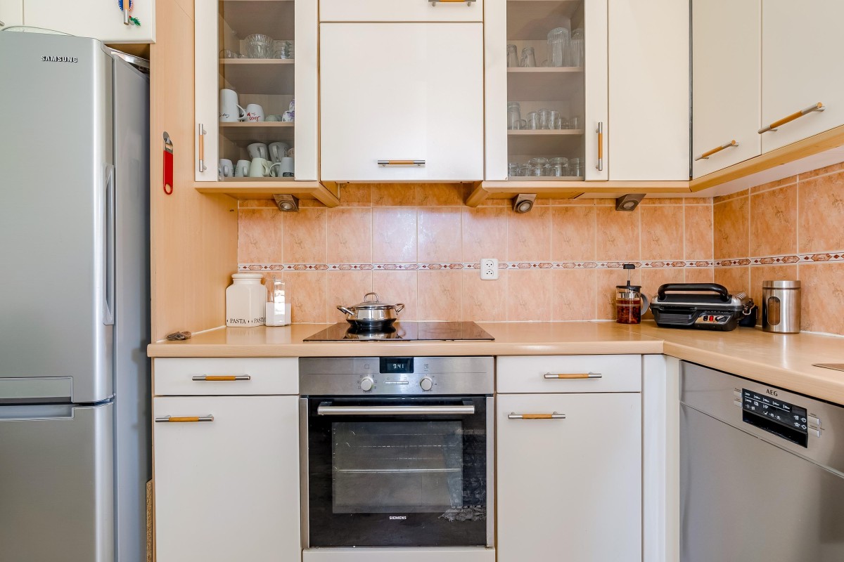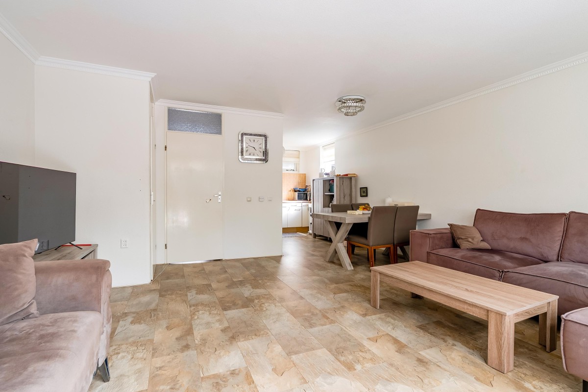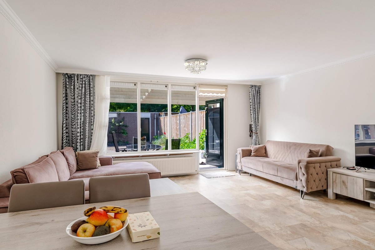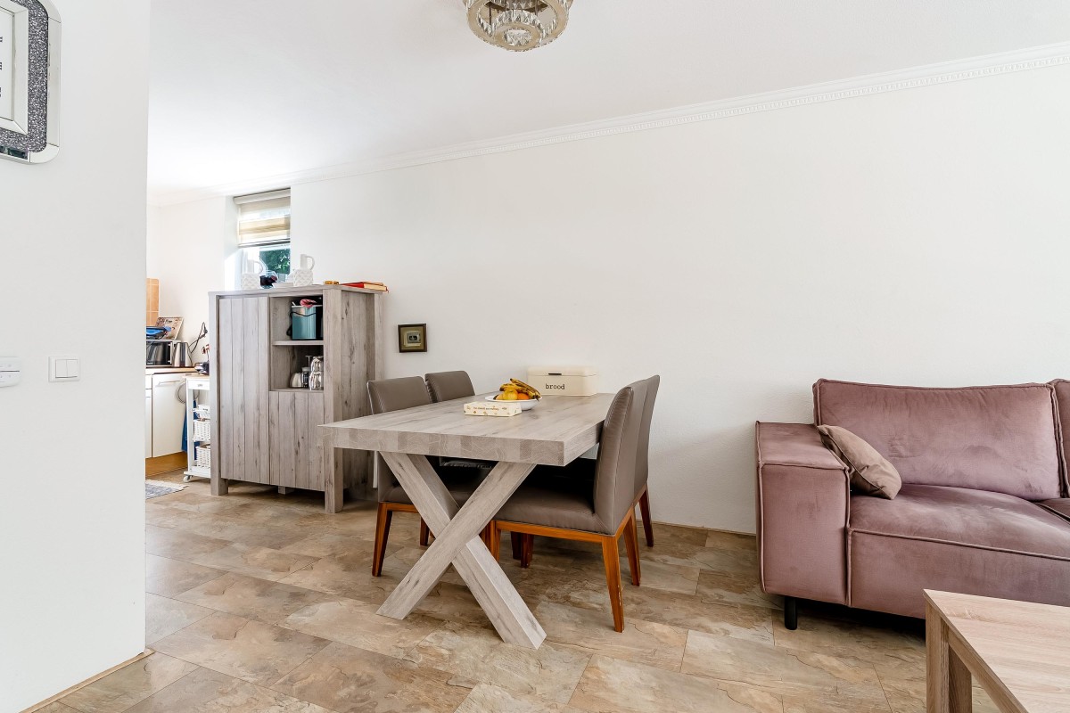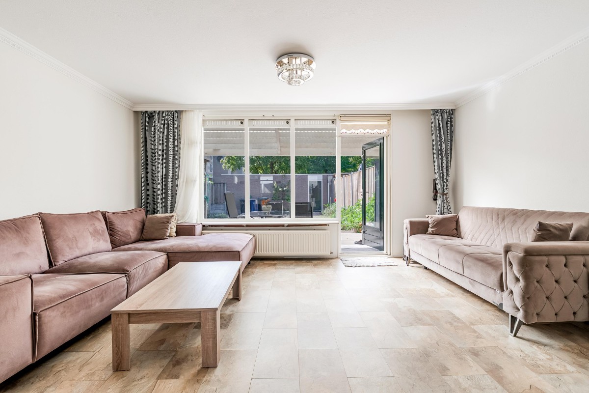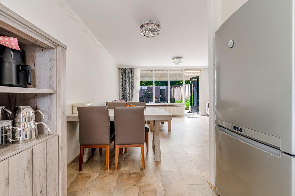 Through the front garden, you reach the entrance of the house. The hallway provides access to the meter cupboard, the toilet, the staircase, and the spacious living room. This living room is located at the rear and, thanks to the large windows, offers a view of the garden. The open kitchen at the front has a practical corner layout with plenty of workspace and storage. It is equipped with an induction cooktop, combination microwave/oven, dishwasher, and refrigerator, but also offers the possibility to update it to your own taste. The living room also has a convenient storage cupboard under the stairs and access to the back garden through a door.