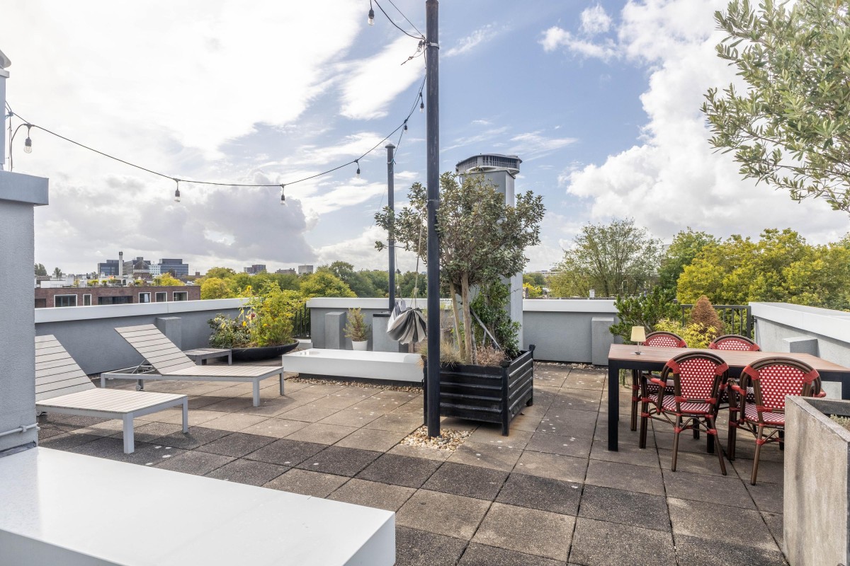 Lees verderAdditional advantages include a private storage room, a shared indoor bicycle storage, and the spectacular rooftop terrace shared with the neighbors – a place to enjoy views of the city center, from sunrise to sunset.