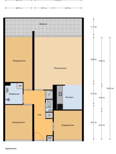 Finally, the apartment also includes an external storage unit on the ground floor of 7.7 m², measured according to the NEN-2580 measurement certificate.