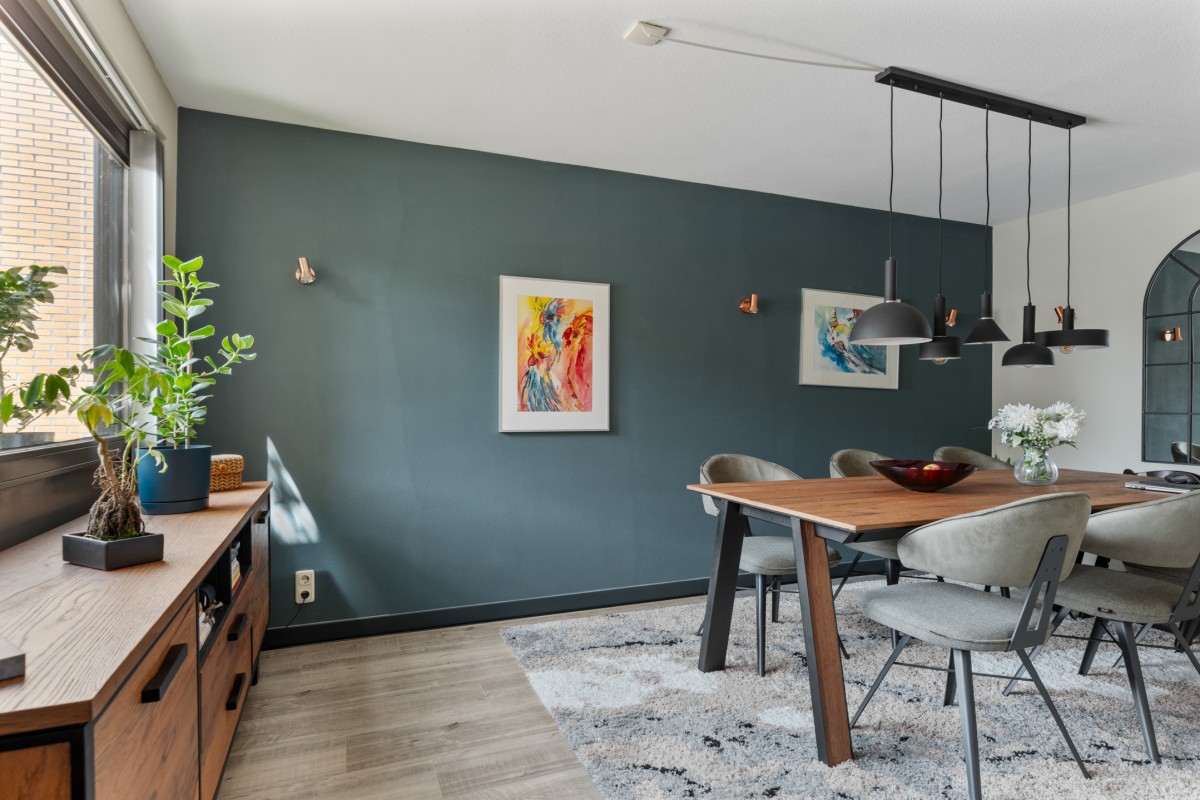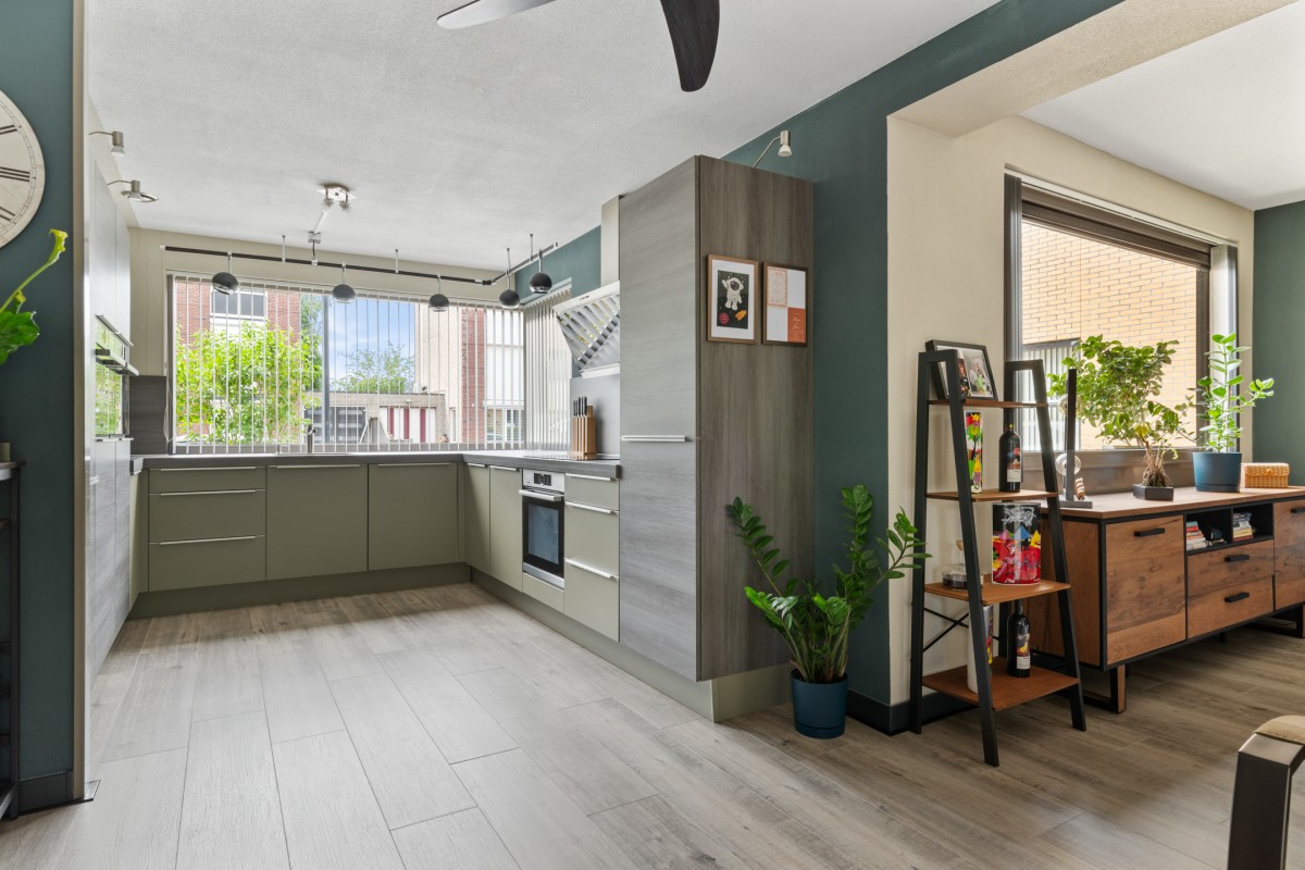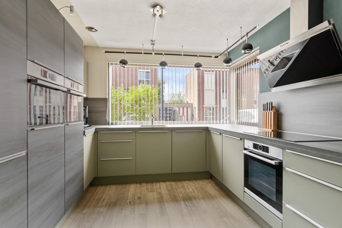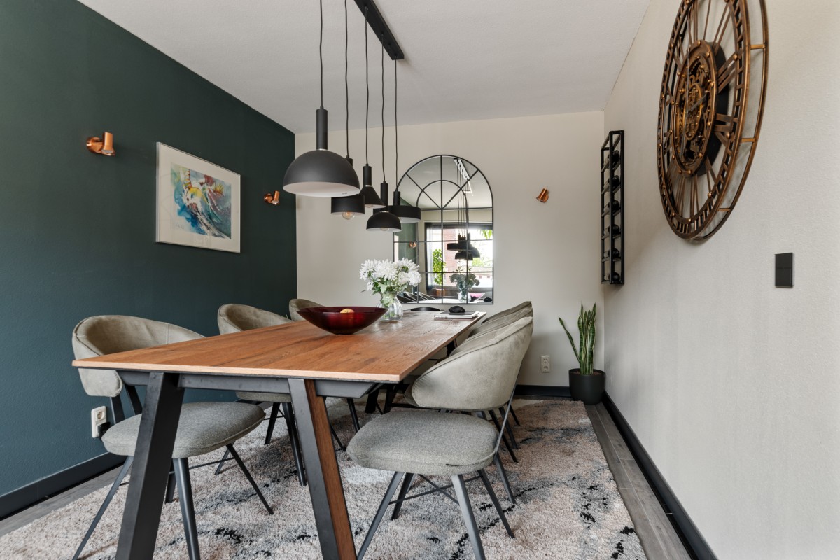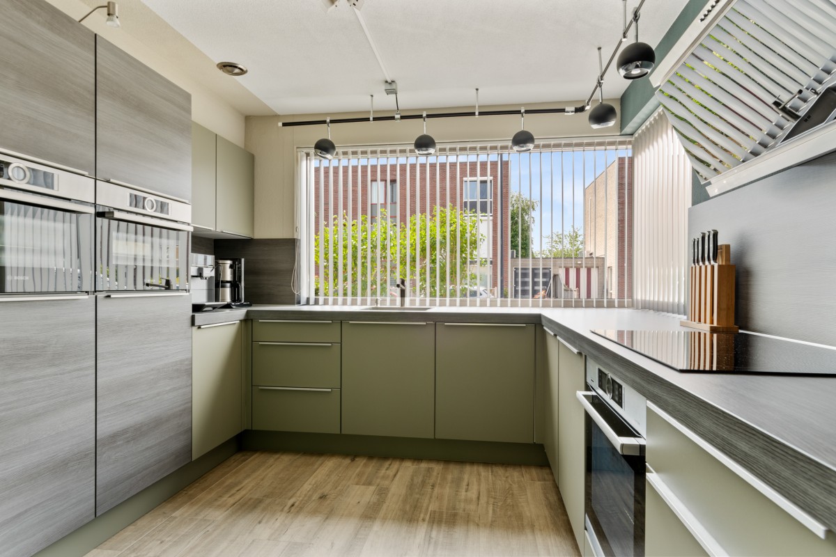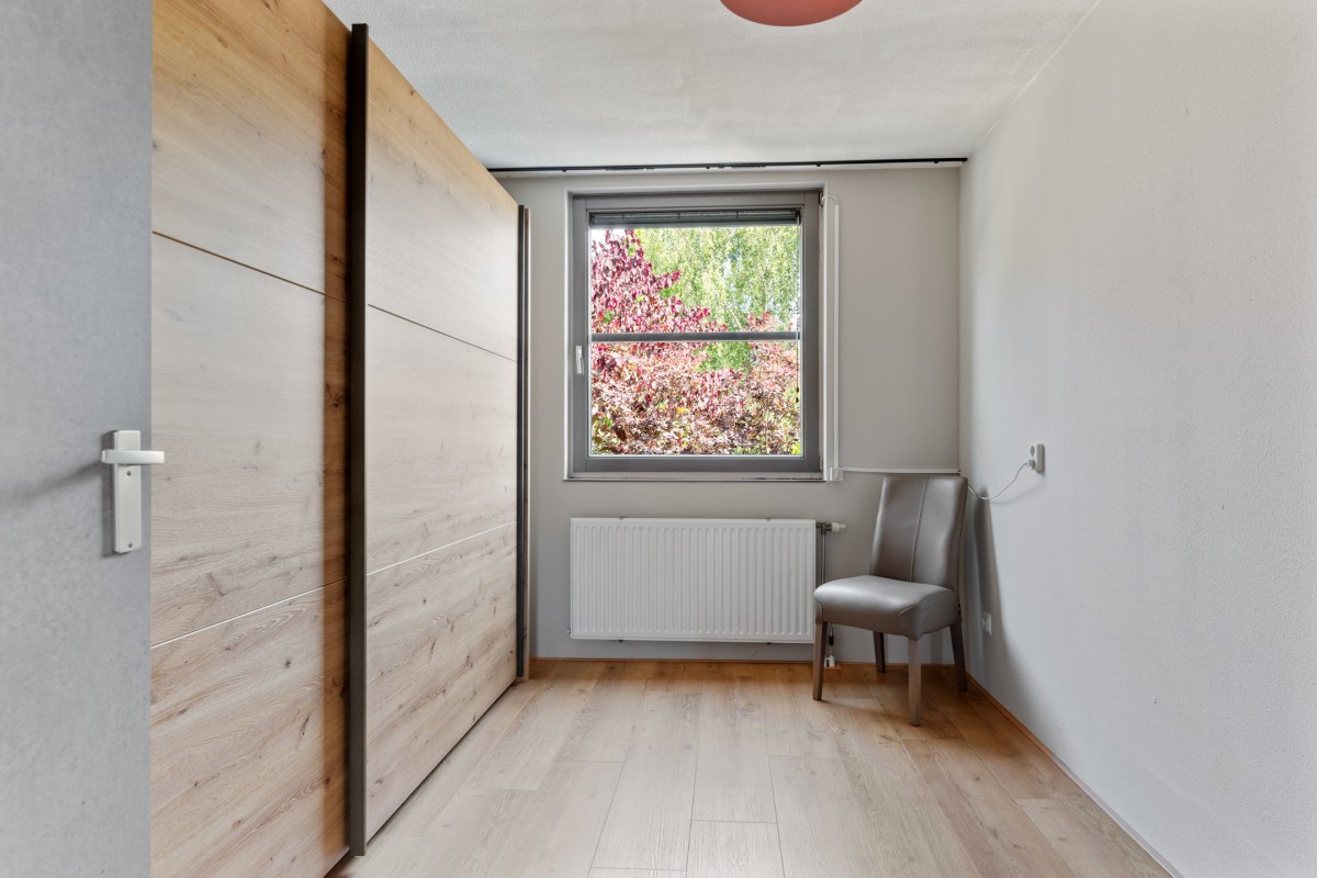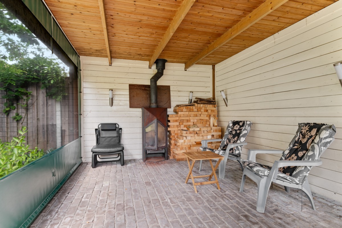 This property has a spacious living room with plenty of natural light, creating a pleasant and open atmosphere. The cozy pellet stove not only provides warmth but also adds to the ambiance. Perfect for a long evening with a good book or a glass of wine. Through the double French doors, you can access the well-kept garden at the rear.