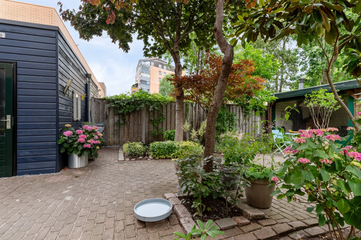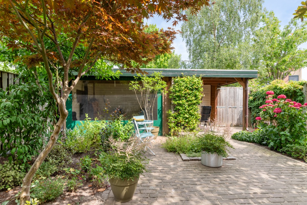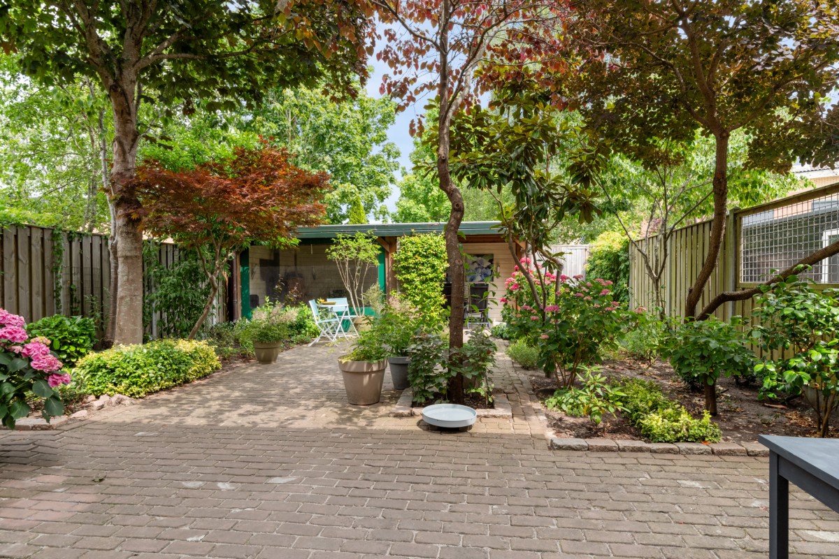 The garden also features a surprisingly spacious storage shed. Ideal for a DIY enthusiast, hobbyist, or as additional storage space.
