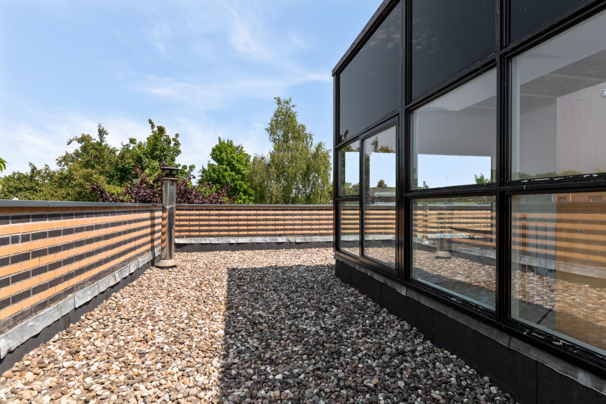 The 34 m² roof terrace is walkable, and by adding decking, you can further enhance the living comfort and make the most of the outdoor space with privacy and a nice view.