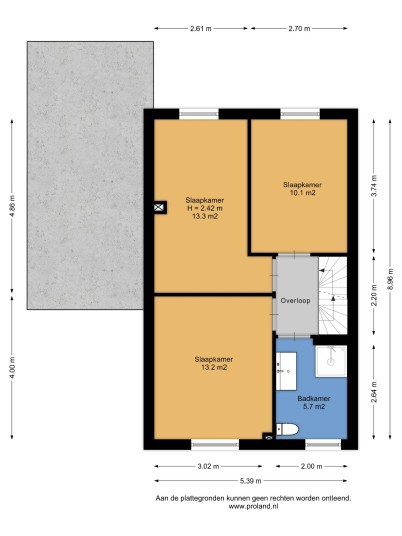 Left rear bedroom: 13.3 m².