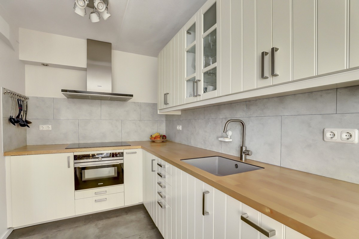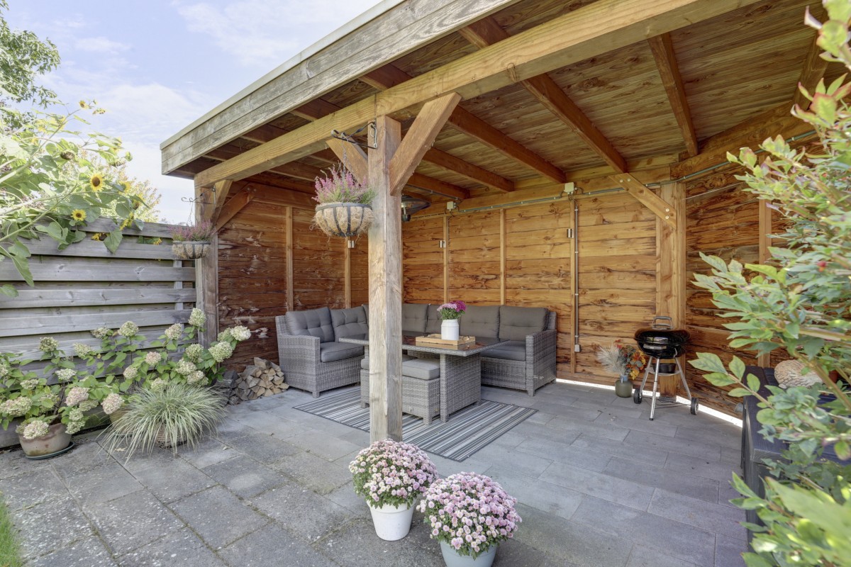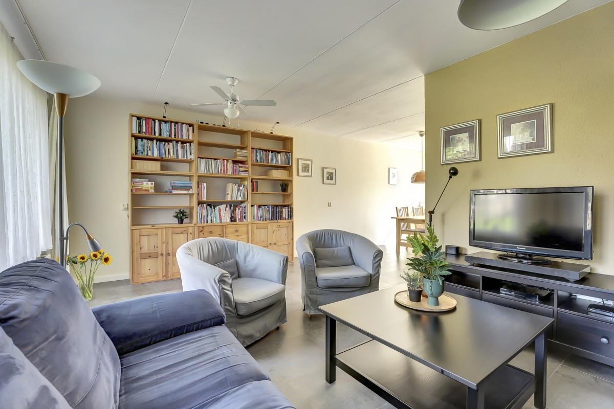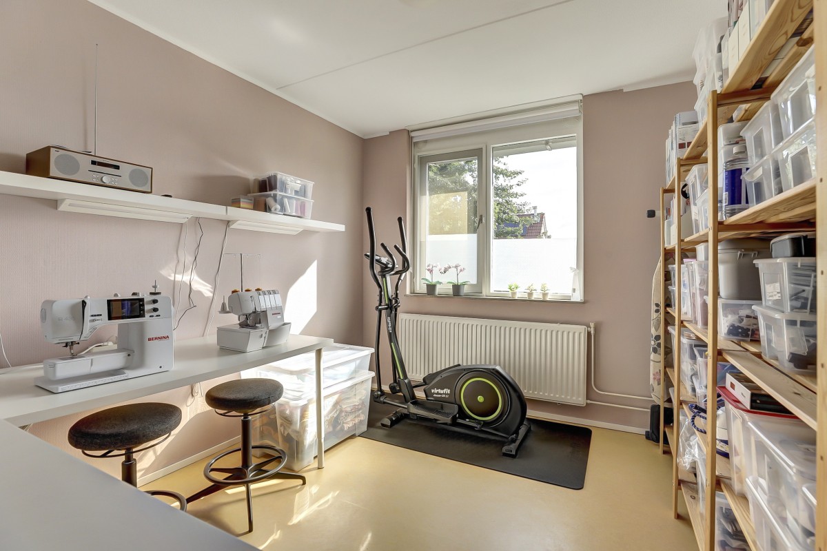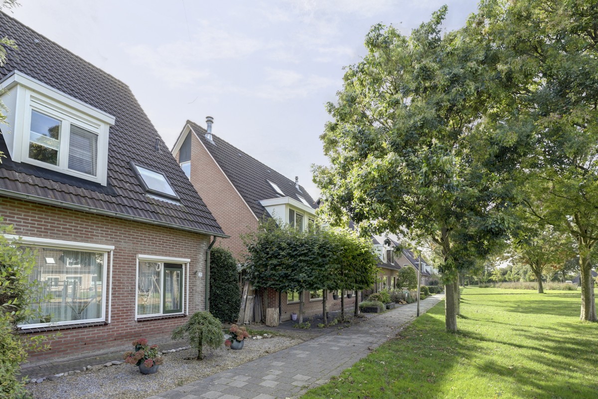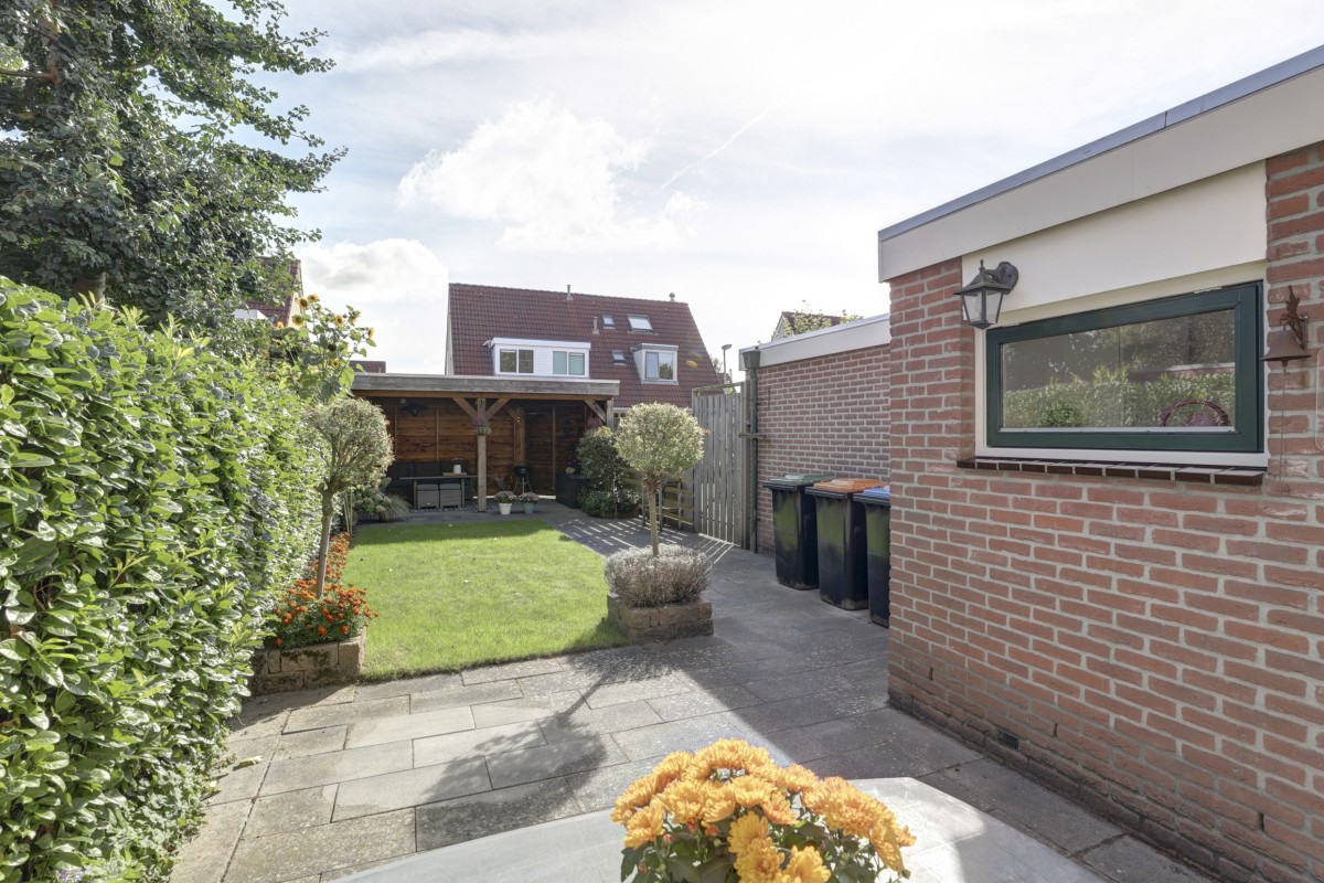 Begane grond: overdekt entree, hal met garderobe, trapopgang, meterkast (2020), toiletruimte met hangcloset en fonteintje doorgang naar de woonkamer met vrij uitzicht over de brede groenstrook. De tuingerichte eethoek met aansluitend de moderne open keuken in hoekopstelling welke voorzien is van een ingebouwde 5-pits inductie kookplaat met flexzone, rvs afzuigkap, vaatwasser, koelkast en een combi-oven. Deur naar de ruime bijkeuken welke is voorzien van een plavuizen vloer met de opstelplaats voor de wasapparatuur. Vanuit de bijkeuken is er een doorgang naar de ruime garage met dubbele deuren naar de oprit en rockpanel boeidelen. Tevens heeft de bijkeuken nog een deur naar buiten aan de voorkant van de woning. De diepe tuin is fraai aangelegd en voorzien van een terras met zonnescherm, houten overkapping, borders met vaste beplanting en poort naar de oprit. De begane grond is grotendeels voorzien van een marmoleum vloer en grotendeels overlegd met een pvc vloer.