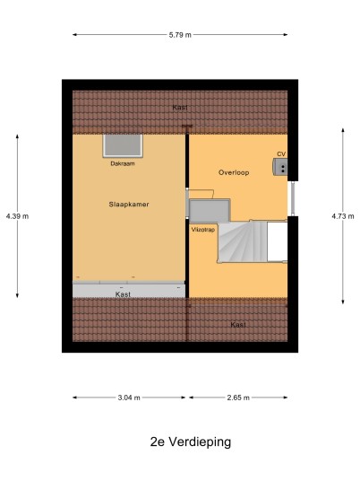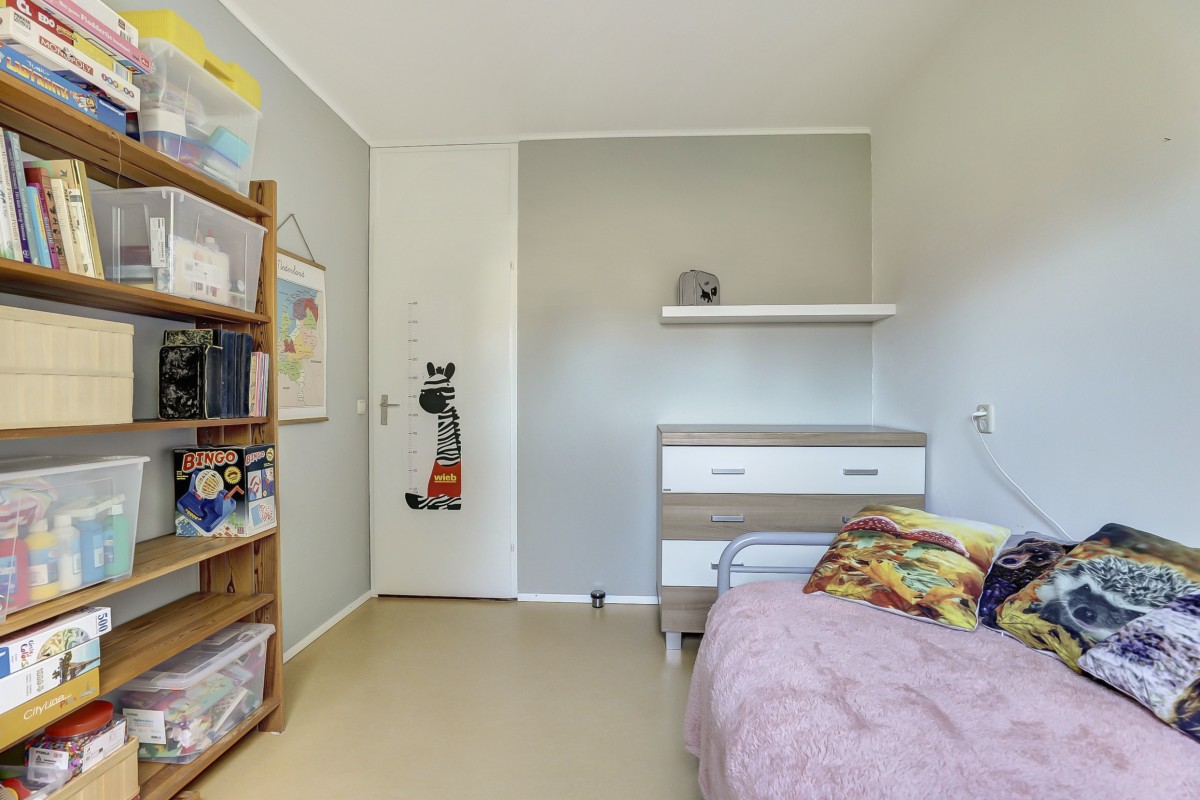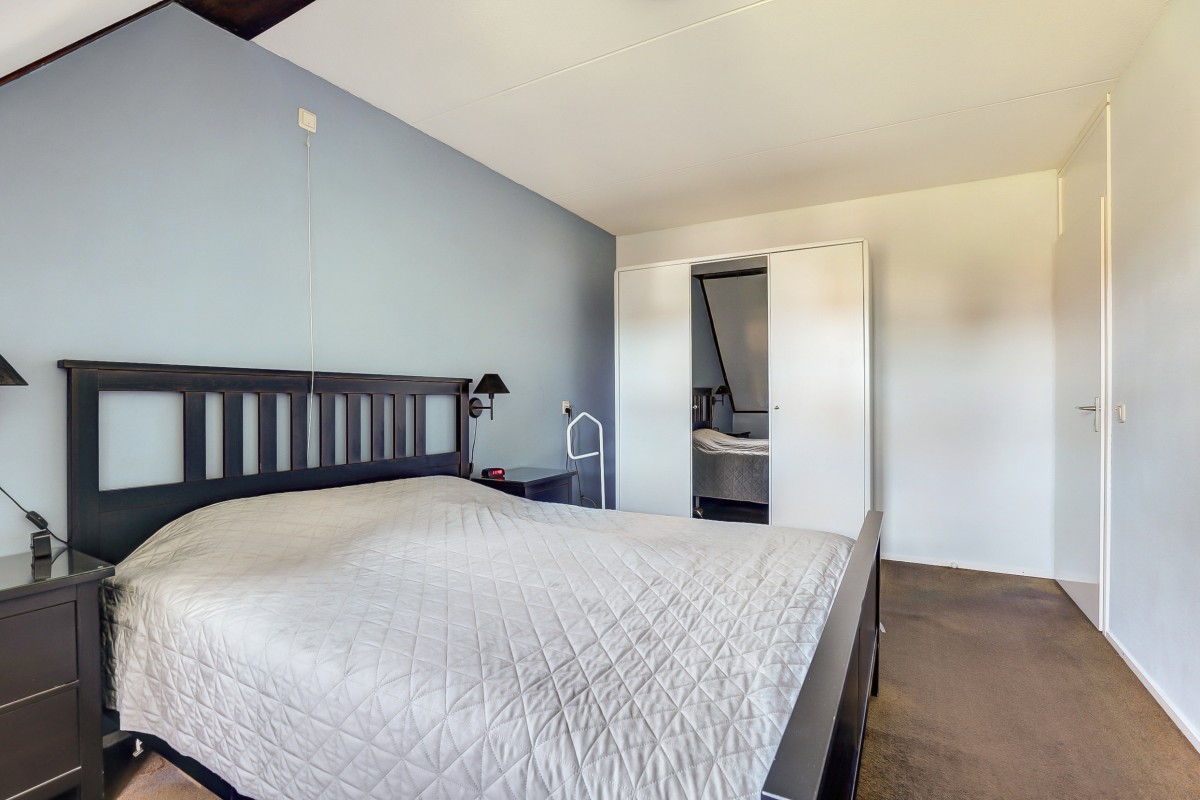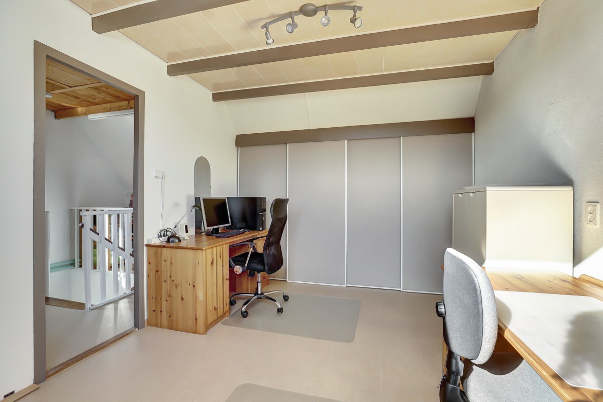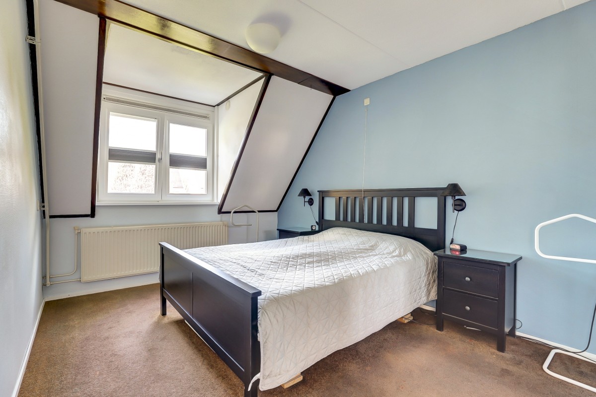 Tweede verdieping: Vaste trap naar ruime zolderverdieping voorzien van een kunststof gevelraam met kantel/kiepraam met op de voorzolder de opstelplaats van de C.V.-ketel (Intergas 2021) en mechanische ventilatie (2021) alsmede voldoende bergruimte achter de knieschotten. Royale vierde slaapkamer voorzien van een dakraam, knieschotten en eveneens een marmoleum vloer. Boven de slaapkamer en de overloop is nog een ruime bergzolder aanwezig met tevens de omvormer van de zonnepanelen.