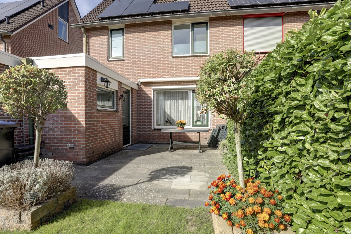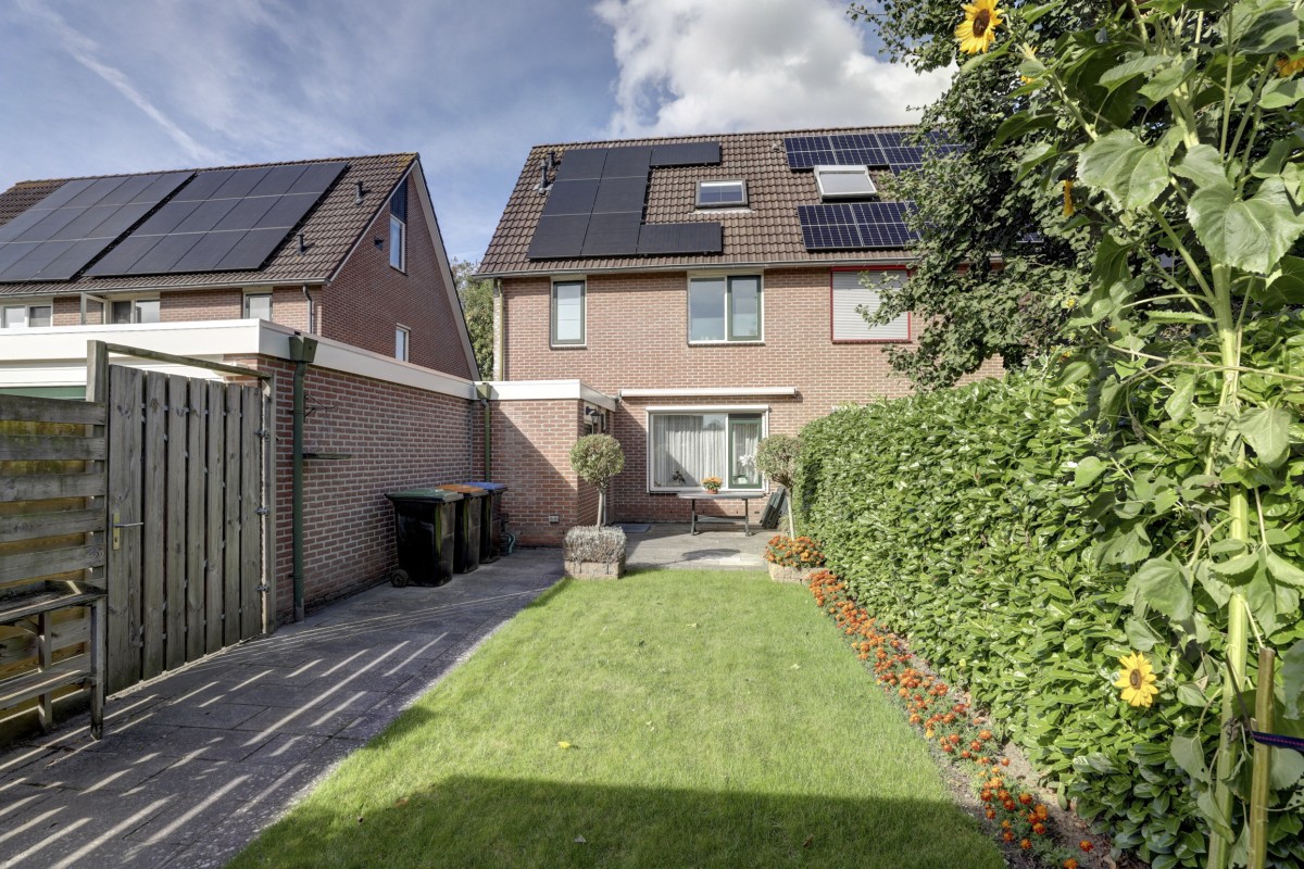 Aan een mooie brede openbare groenstrook ligt deze keurig onderhouden 2-onder-1-kapwoning. De woning is op een mooie groene locatie gelegen in wijk "De Kruidentuin" te Dronten. Het perceel van 231 m2 beschikt over een diepe zonnige tuin op het zuid oosten met een houten overkapping en grenst met de voortuin aan een ruime openbare groenvoorziening. Op korte afstand is het winkelcentrum Dronten-zuid gelegen waar de nodige winkels en een gezondheidscentrum op loopafstand aanwezig zijn, alsmede basisscholen.