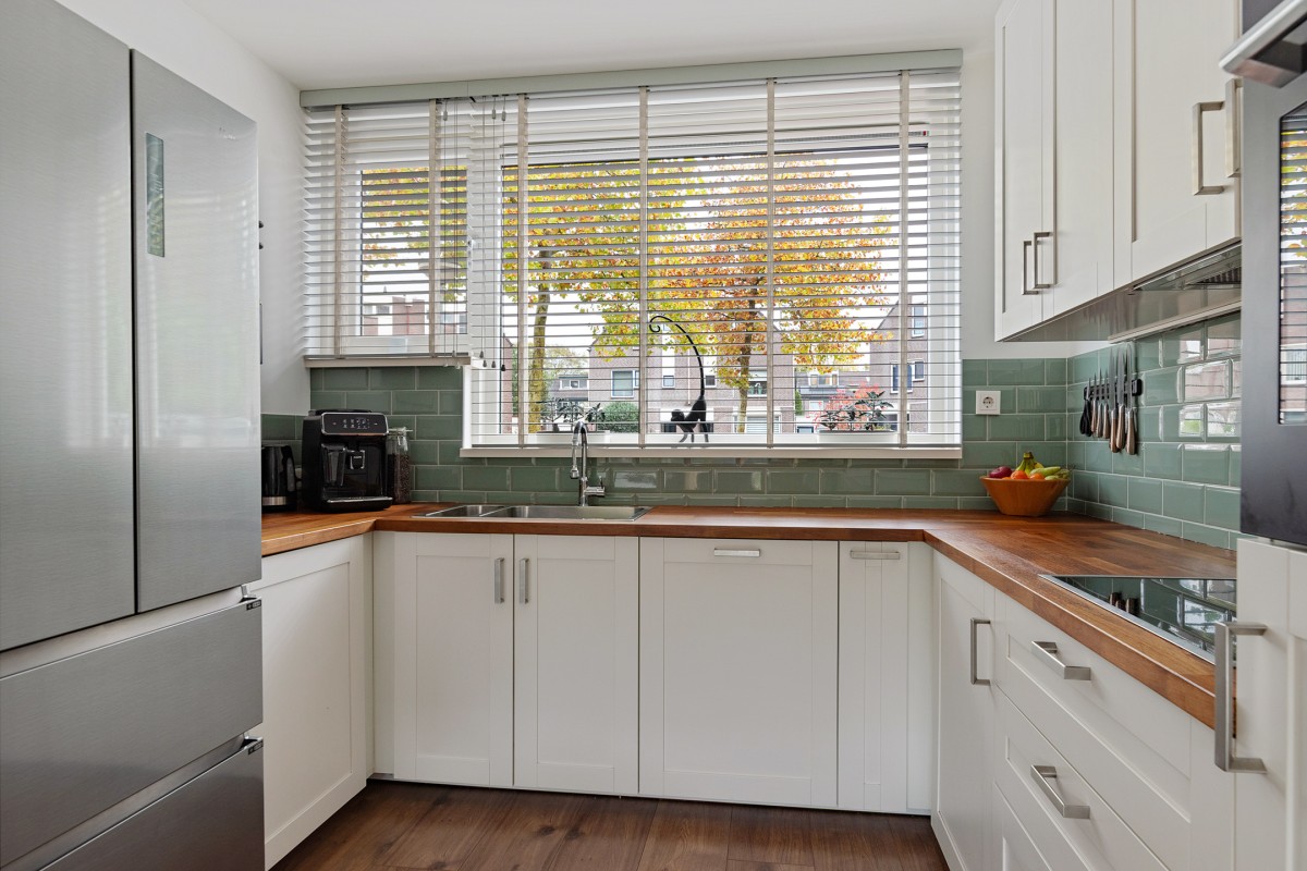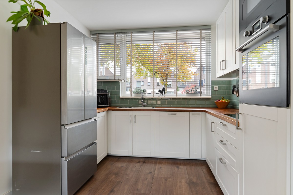 Thanks to the large window, the kitchen is bathed in natural daylight, contributing to a bright and pleasant atmosphere.