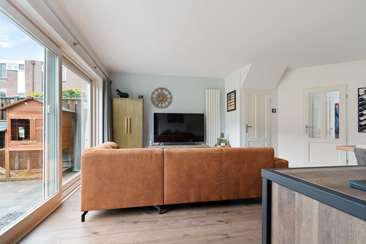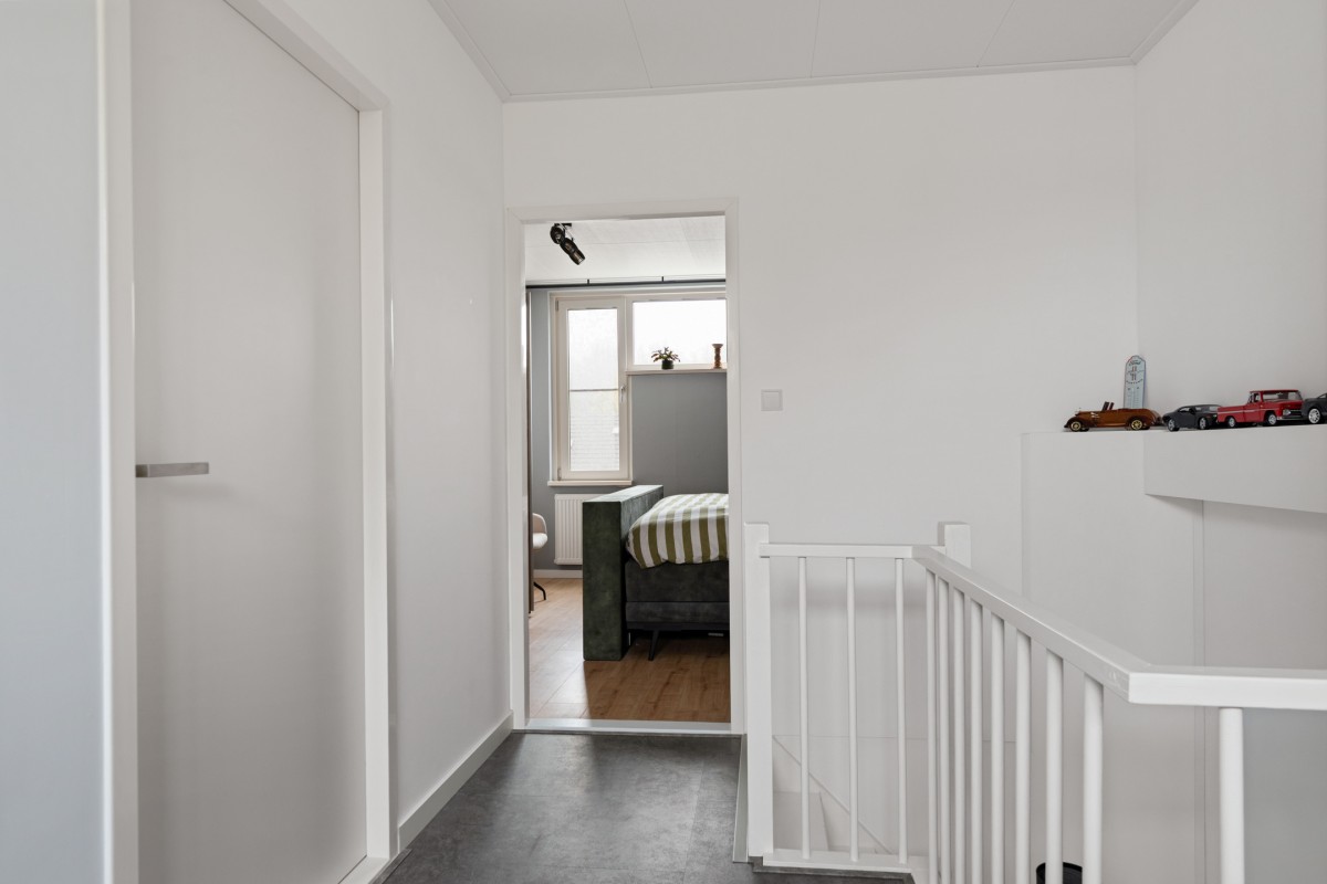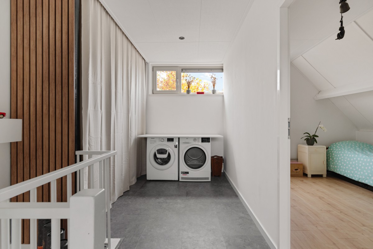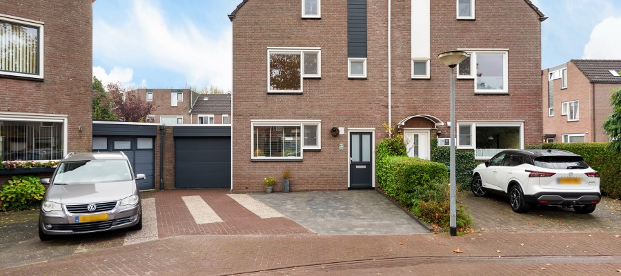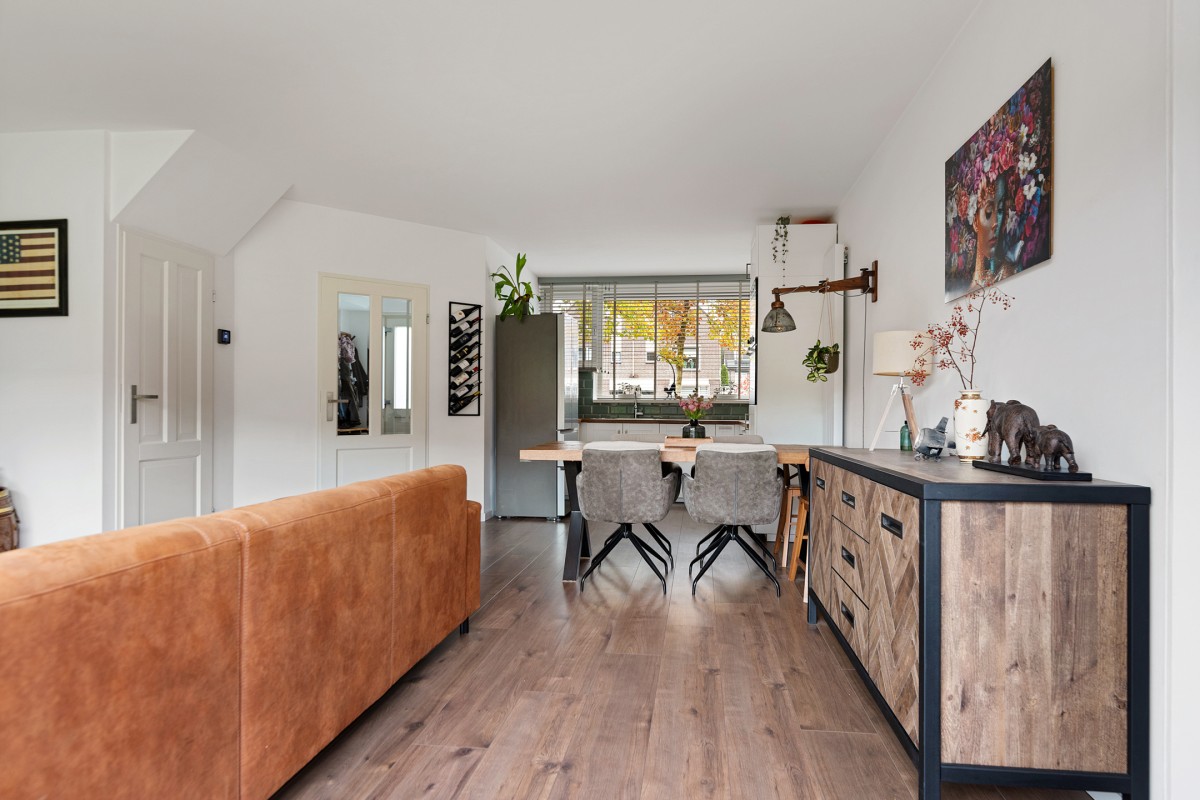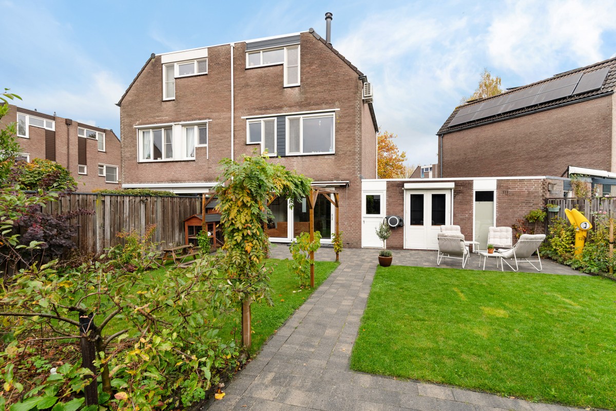 This property features a large garage, off-road parking, a light-filled living room, five bedrooms, a modern bathroom, and a spacious garden with a covered terrace facing south. Additionally, the house is equipped with plastic window frames with HR++ glazing and has an energy label B.