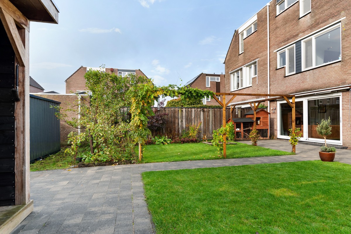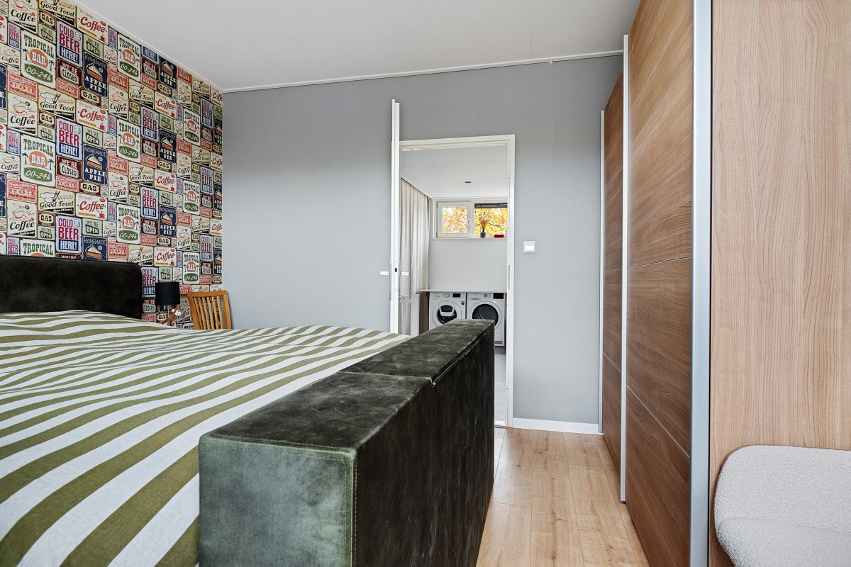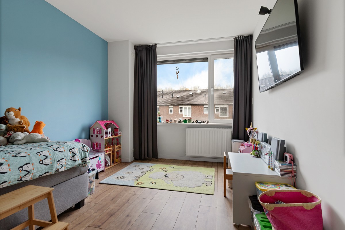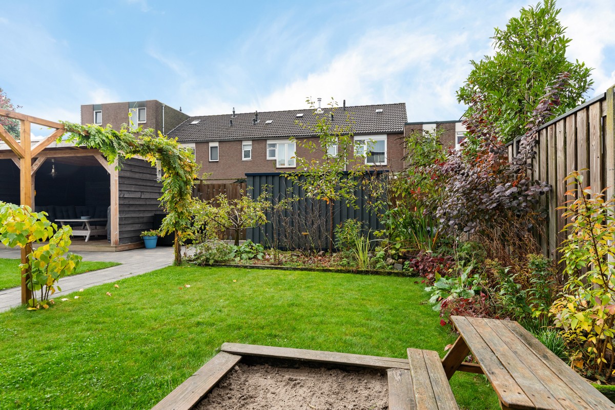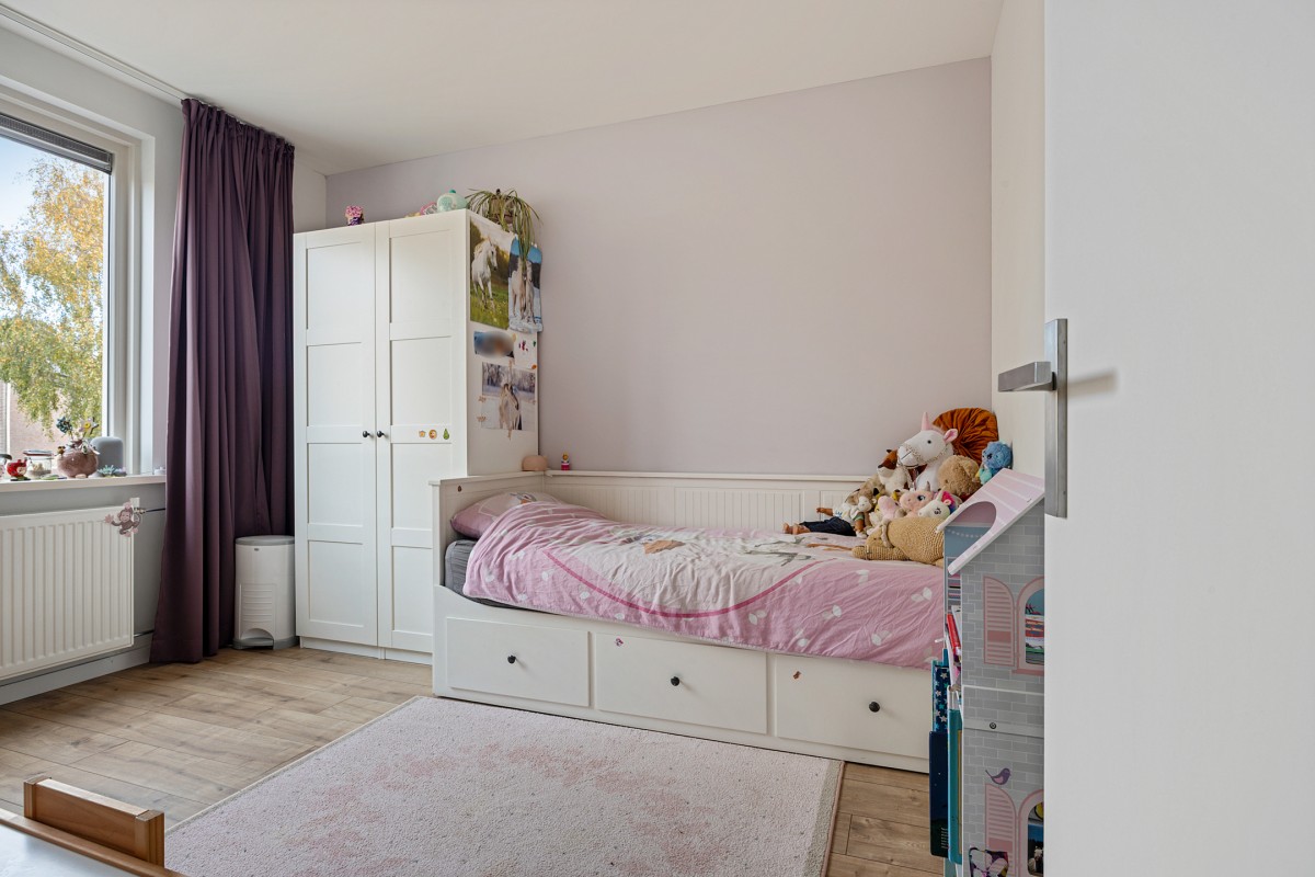 This property features a large garage, off-road parking, a light-filled living room, five bedrooms, a modern bathroom, and a spacious garden with a covered terrace facing south. Additionally, the house is equipped with plastic window frames with HR++ glazing and has an energy label B.