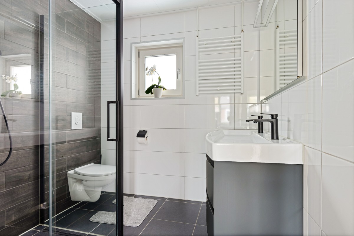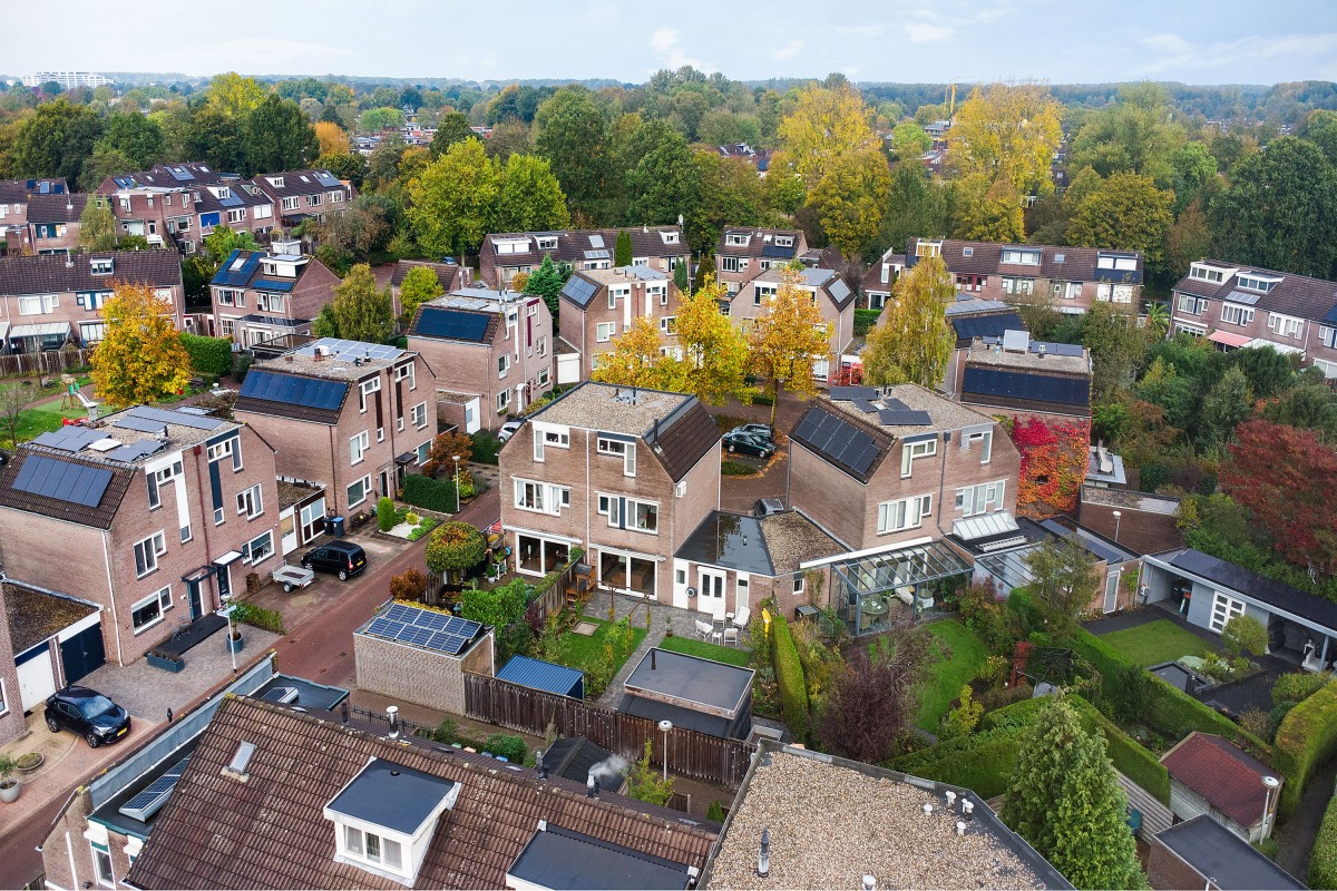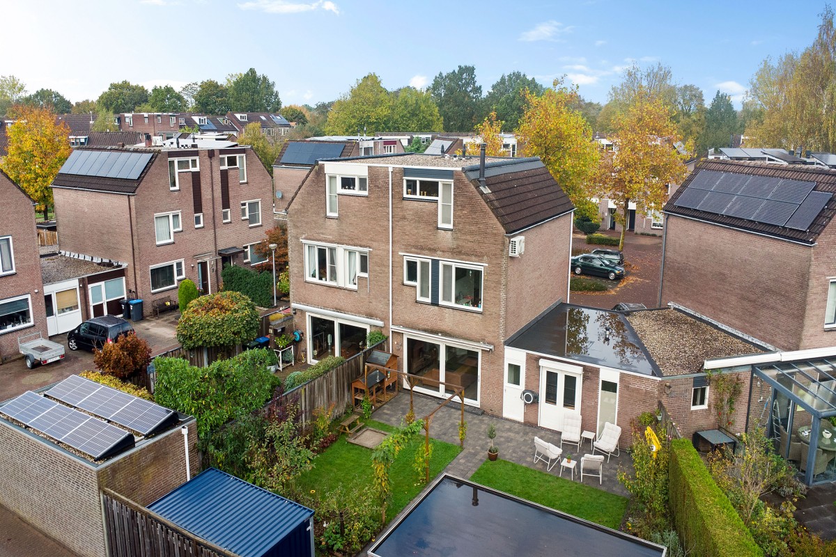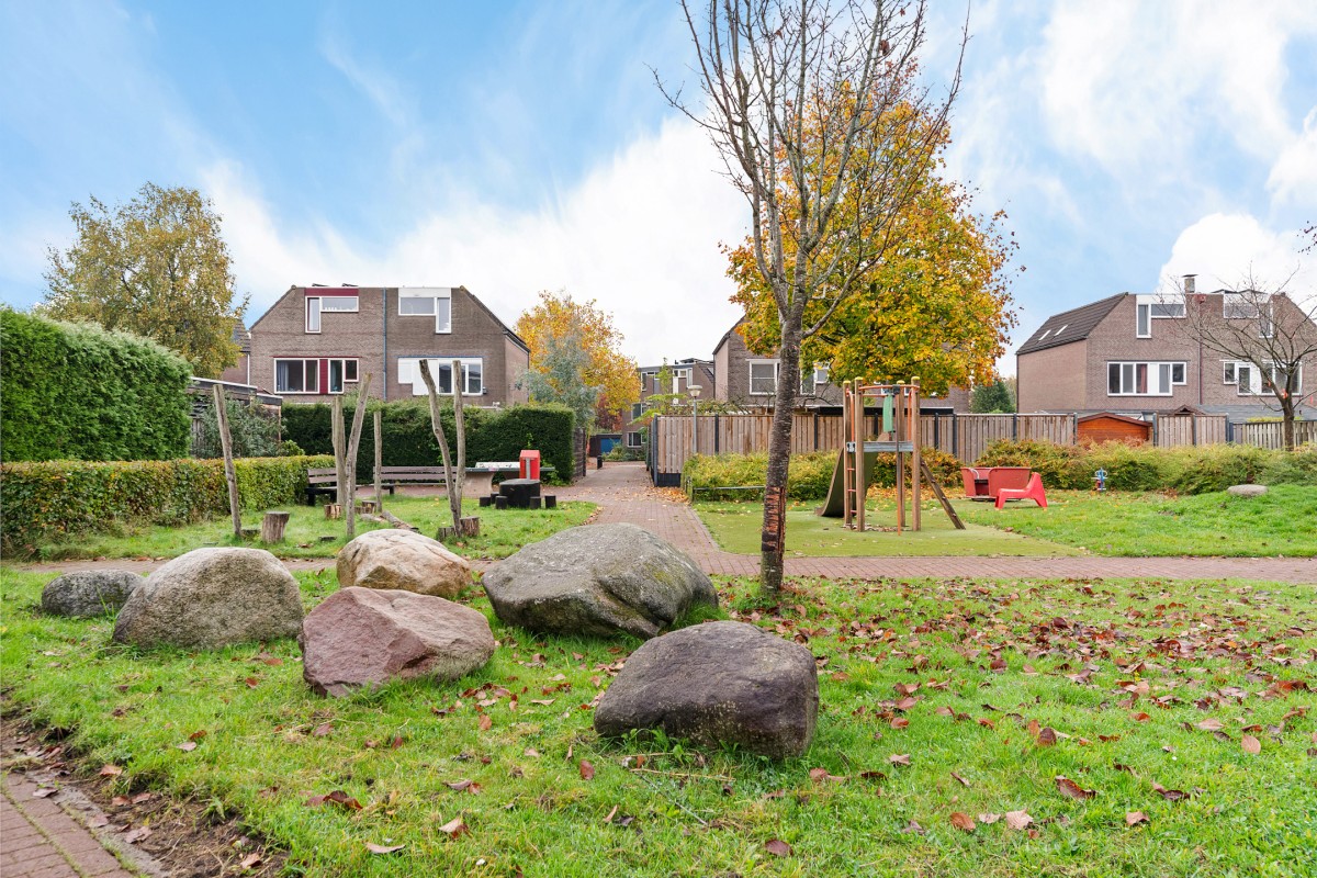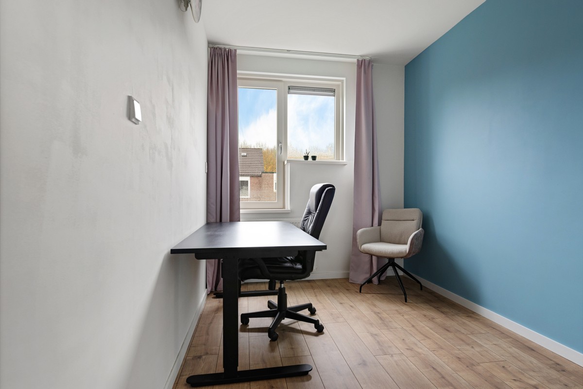 This property features a large garage, off-road parking, a light-filled living room, five bedrooms, a modern bathroom, and a spacious garden with a covered terrace facing south. Additionally, the house is equipped with plastic window frames with HR++ glazing and has an energy label B.