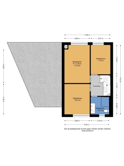 The landing floor is made of PVC, while the bedrooms are covered in laminate.