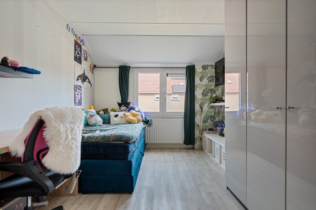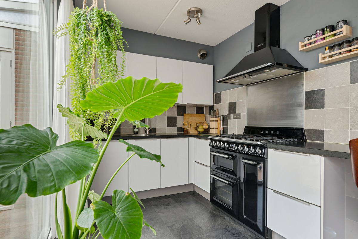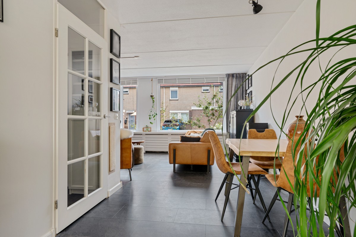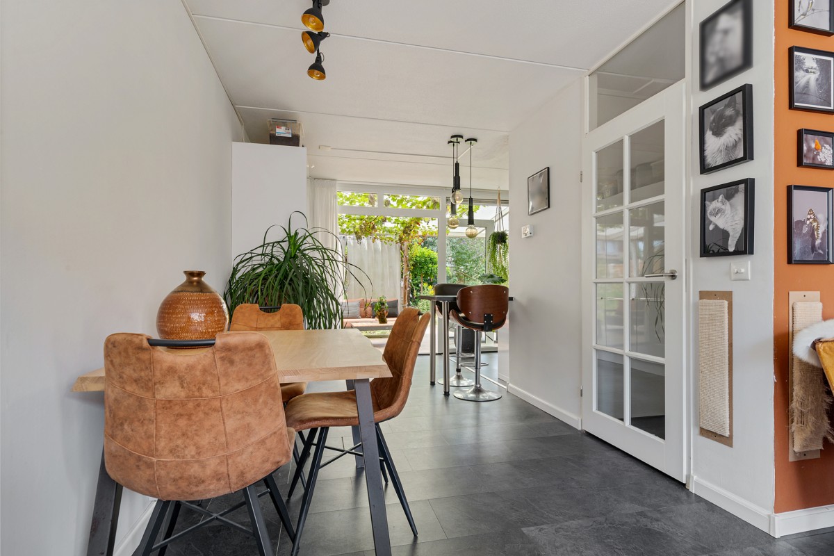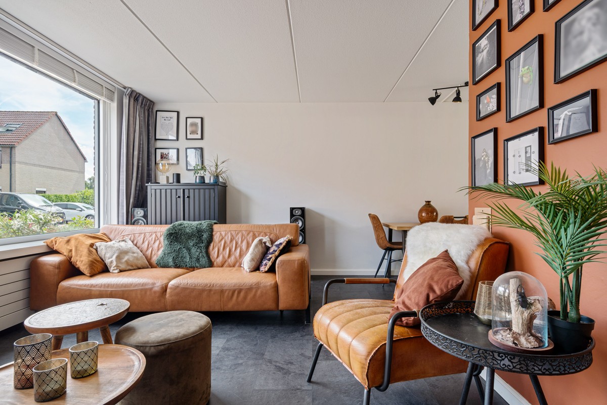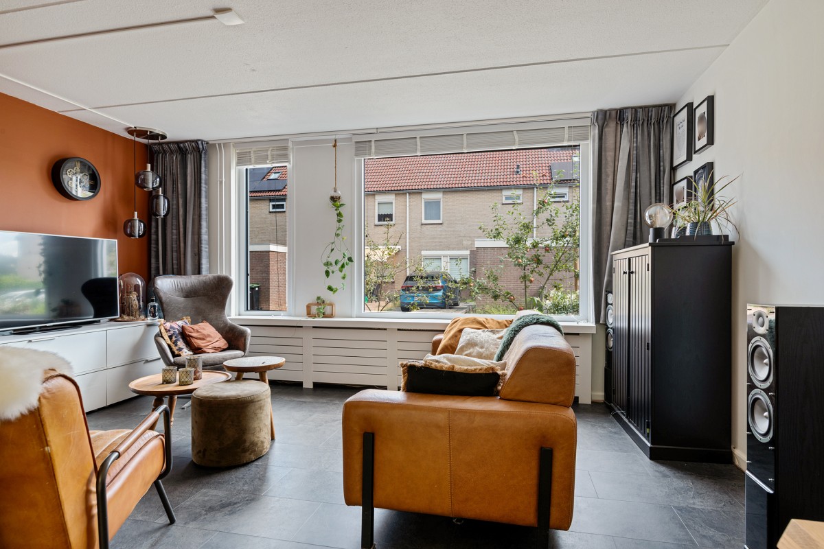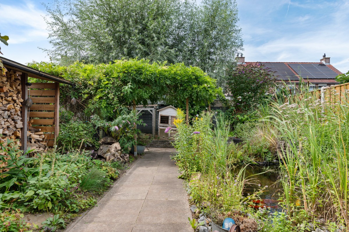 Delightful semi-detached house with a garage, on-site parking, a living room with a cozy wood-burning stove, a kitchen with built-in appliances, 4 bedrooms, a modern bathroom (2025), a west-facing covered back garden, Energy Label A, and 13 solar panels.